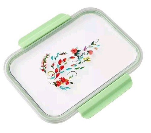 (1) 4-cup container with lid ~ measures approximately 7.25" L x 5.5" W x 2.5" H