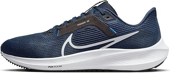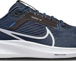 The product is a size 10 pair of Nike Air Zoom Pegasus 40 sneakers in the Midnight Navy Black color. These athletic shoes are designed for men and feature a breathable mesh upper. With a sleek sneaker style and the signature Nike Air Zoom technology, these shoes provide both style and performance for any athletic activity. The midnight navy blue color adds a stylish touch to the classic design, making them a great choice for sports or casual wear.