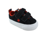 Introducing the Converse Hello Kitty One Star 2V ox Black 2 Size Infant # 763908C - a stylish and comfortable pair of sneakers perfect for your little one. These shoes feature a low top shoe shaft style, velcro straps for easy closure, and a moderate cushioning level for added comfort. The black suede upper material is accented with the iconic Hello Kitty logo, giving these shoes a fun and playful touch.
