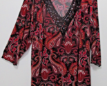 Size 26/28 Fashion Bug Top Red Black White Paisley Sequin V-neck Tie 3/4 Sleeve