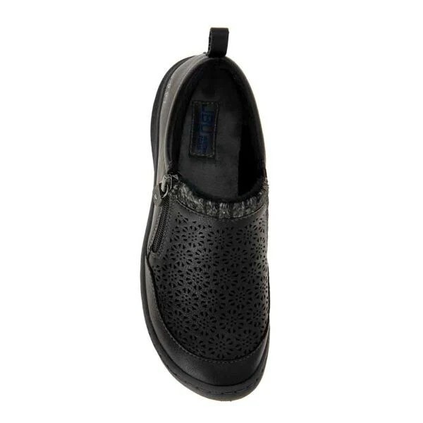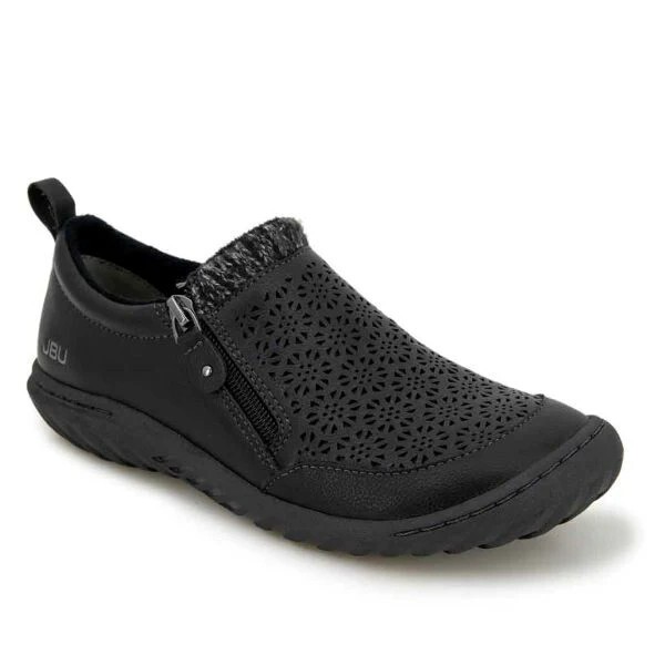 The Jambu Black Burnished Amber Side Zip Women's Shoes in size 7.5 are a comfortable and stylish option for casual wear. With a round toe shape, flat heel, and side zip closure, these shoes offer both convenience and functionality. The classic black color and brand name Jambu ensure a versatile and reliable addition to any wardrobe.