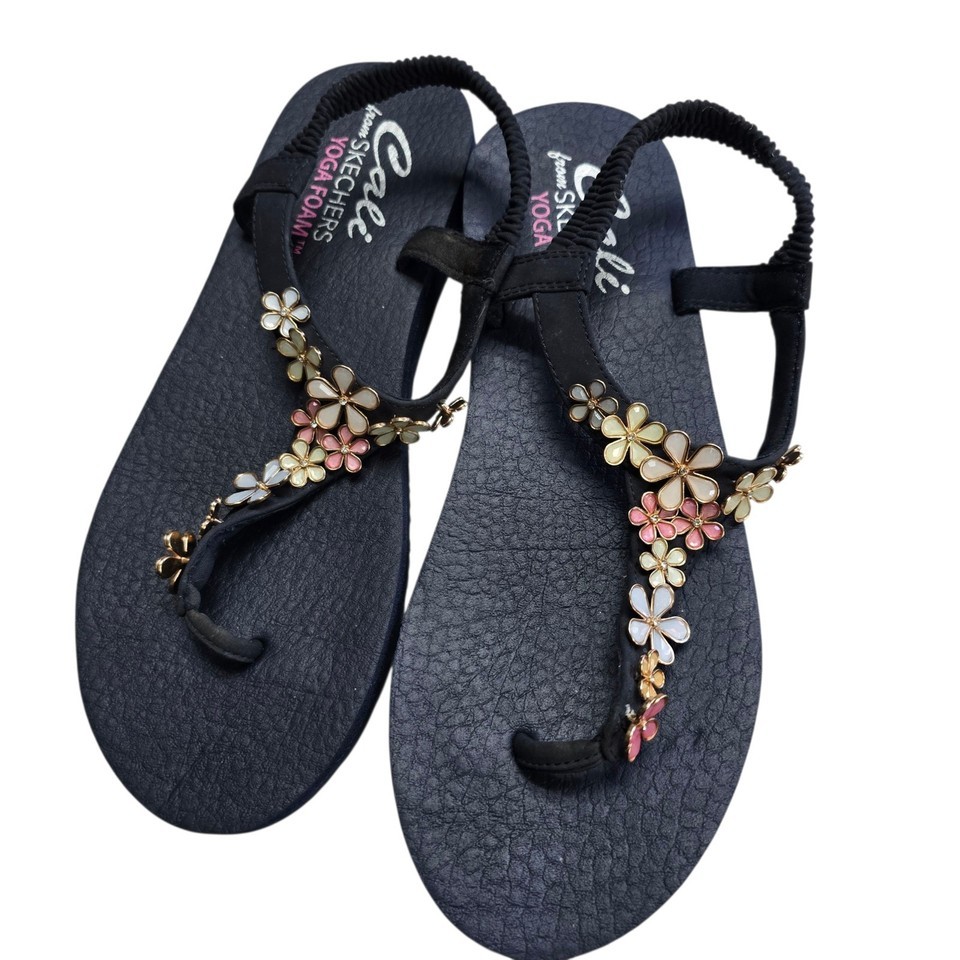 - Skechers Cali Women’s Size 10 Blue Floral Sandals Thong Flip Flops Yoga Foam