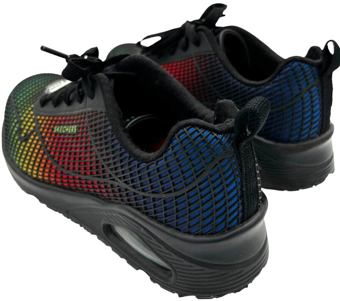 Featuring a well-designed look, the SKECHERS Uno SR Composite Toe safety shoes help you stay busy, and safer, in slippery or wet workplaces. Breathable synthetic mesh and soft textile upper. Lace-up closure. Pull tab on the back for easy on/off. Skech-Air air-cushioned midsole. Air-Cooled Memory Foam insole. Composite toe rated ASTM F2412/2413-2011 I/75 C/75, ASTM F2413-05 Electrical Hazard (EH). Oil and slip-resistant outsole with traction design meets ASTM F2913-19 safety standard.