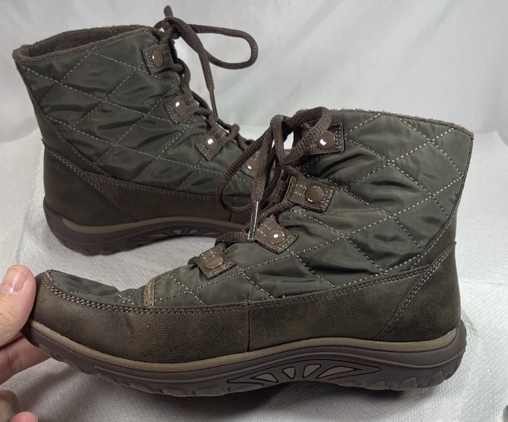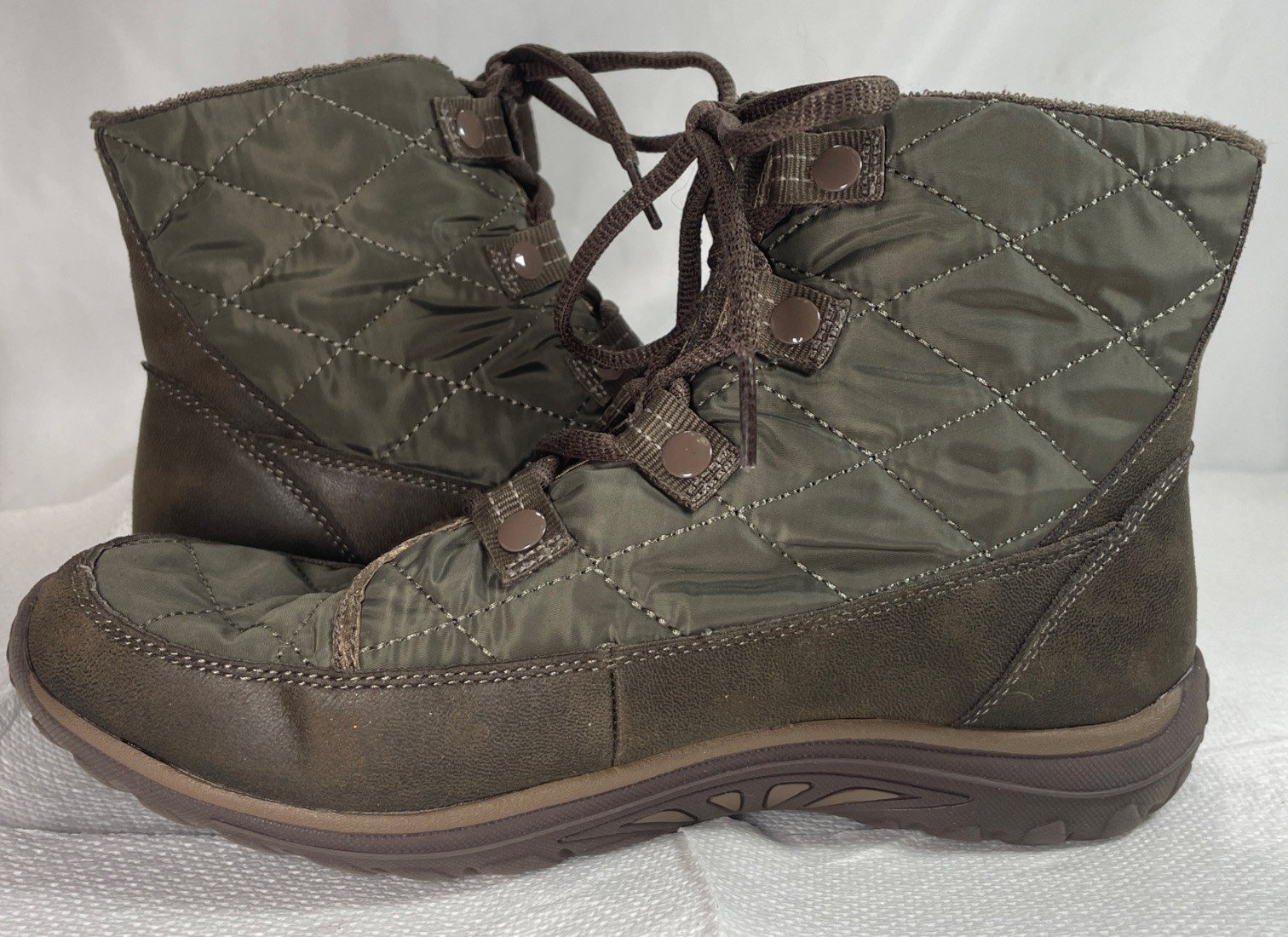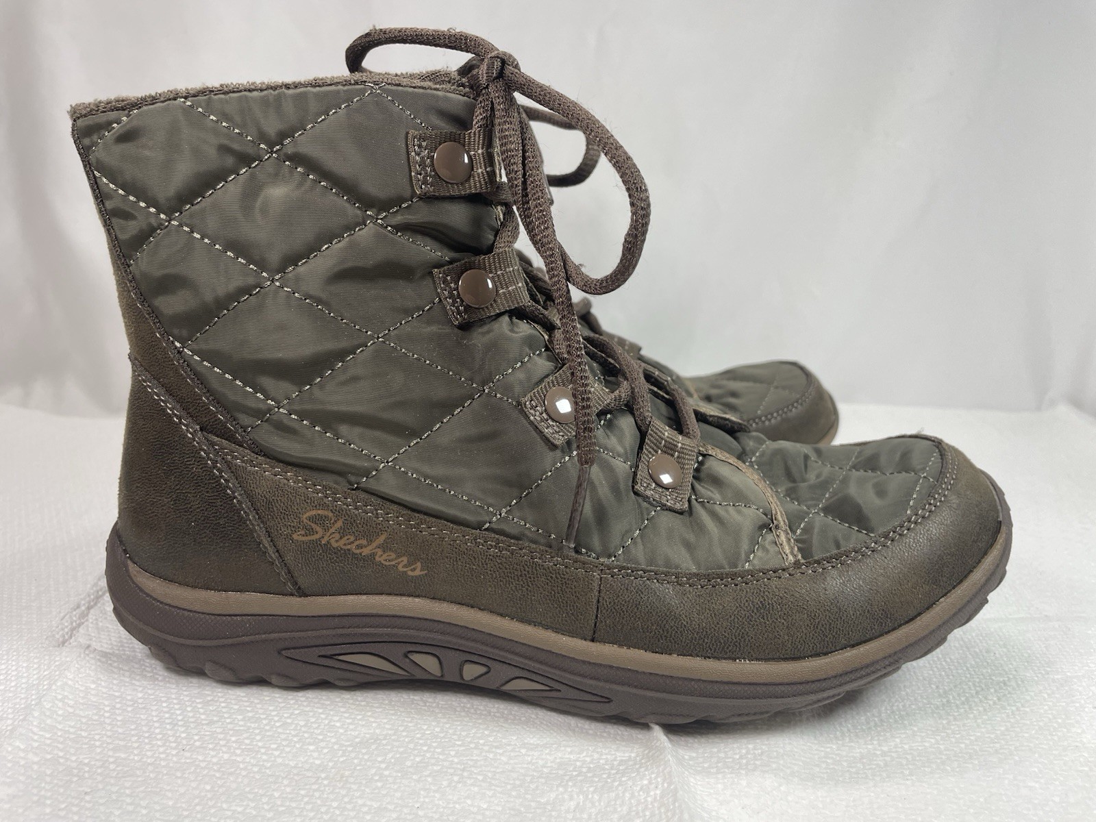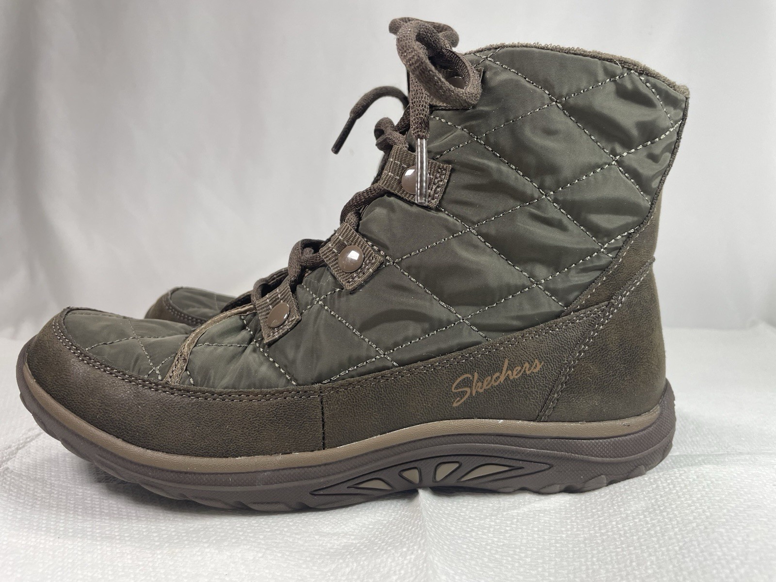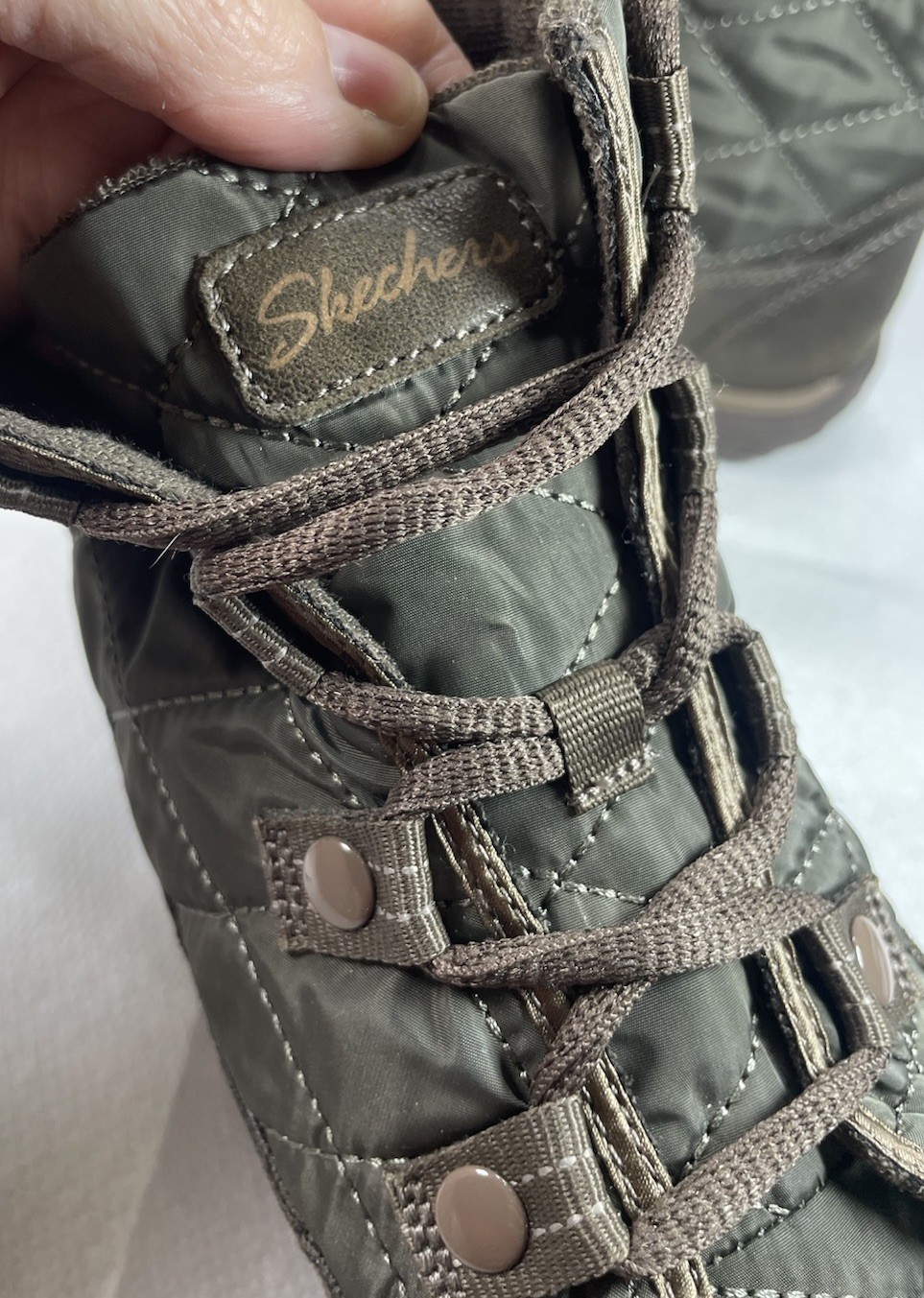 The Sketchers Winter Boots CHILD Sz 7 are stylish and practical winter boots designed for children. With a sleek dark green color and featuring the signature Sketchers brand, these boots are perfect for keeping little feet warm and dry during the winter season. The unisex design makes them suitable for both boys and girls, and the size 7 ensures a comfortable fit for active kids. Perfect for outdoor play or simply keeping cozy at home, these Sketchers Winter Boots are a must-have for any winter wardrobe.