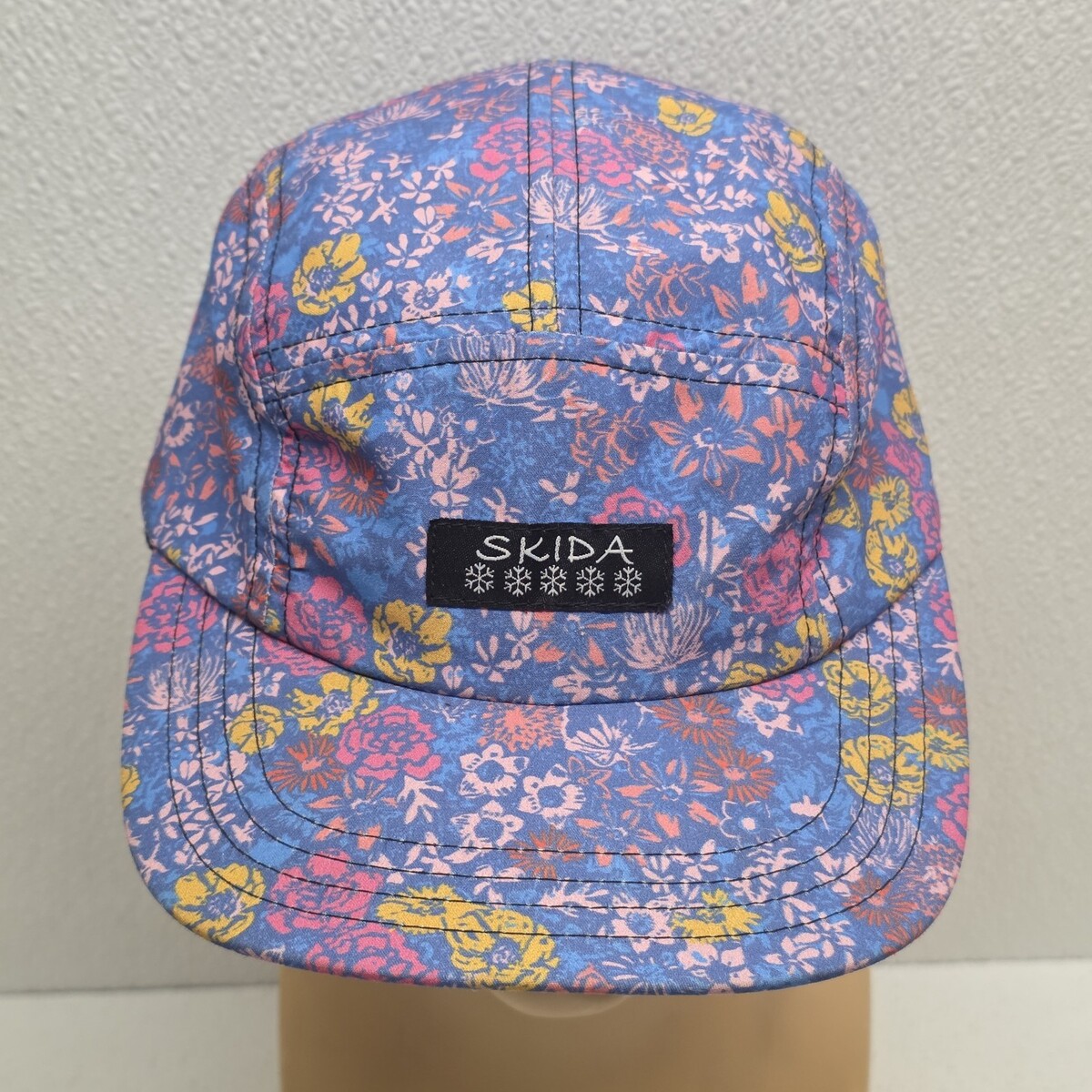 Skida 5 Panel Hat Cap Strapback Blue Pink Yellow Floral Made In USA. Images show actual item that will ship.