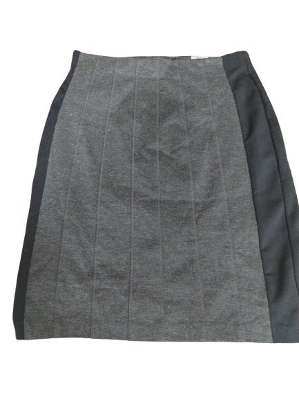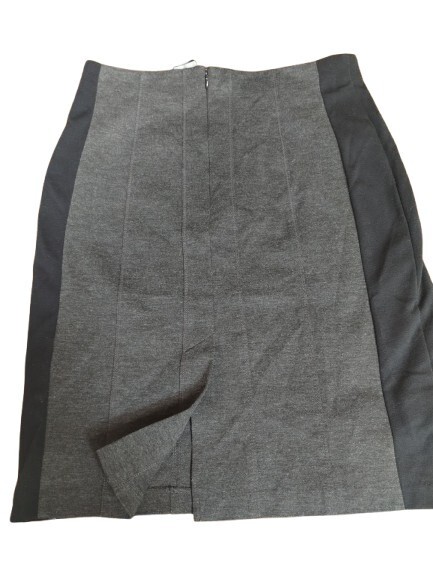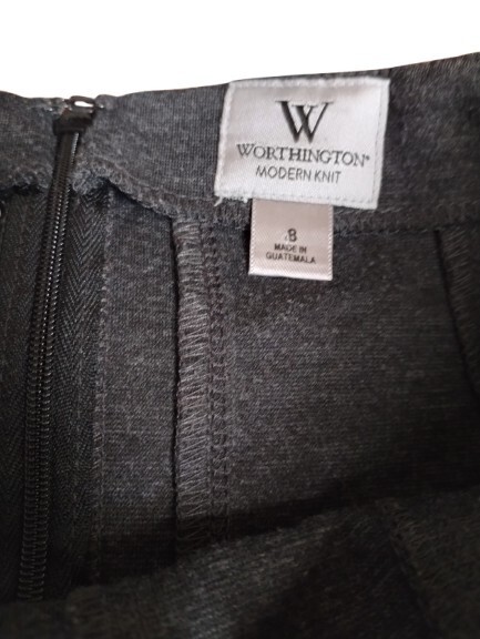 Classic and versatile Worthington skirt featuring a sleek gray front with black side panels for a flattering silhouette.