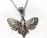 MOTH / BUTTERFLY WINGS WITH SKULL HEAD ON BODY SILVER ALLOY METAL PENDANT with DECO BAIL ON CHAIN LINK NECKLACE 18 - 19 INCHES LONG AND A LOBSTER CLAW CLASP