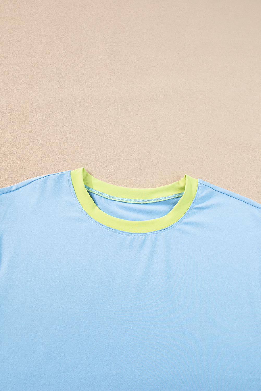 Sky Blue Color Block Detail Casual Two-piece Outfit
