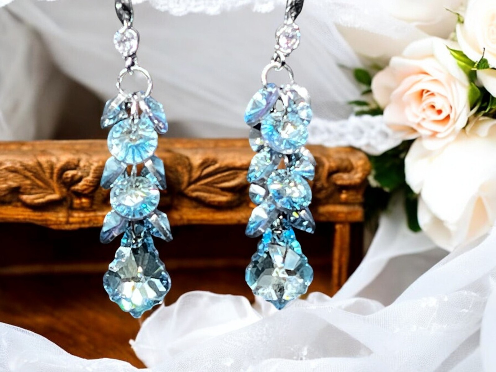 - Sky Blue Crystal Dangle Earrings | 2” Elegant Drop Earrings | Gift for Women