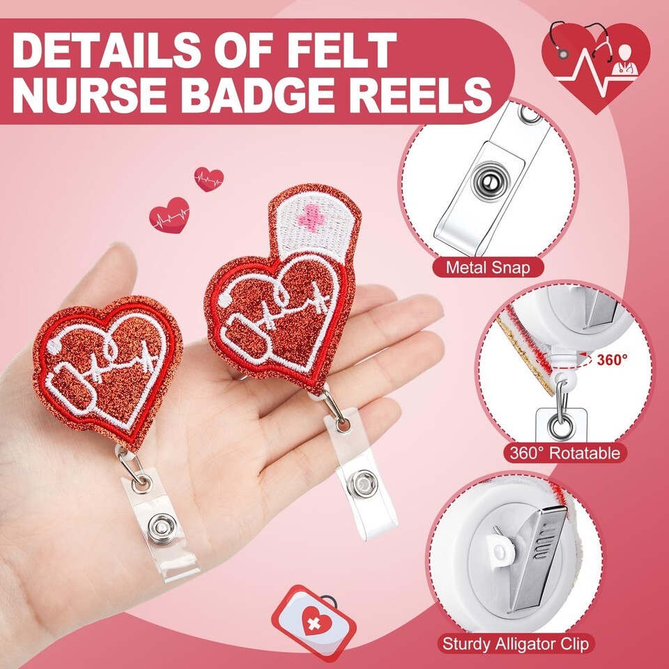 - Skyygemm 12 Pcs Nurse Badge Reels Felt Heart Red Retractable Alligator Clip