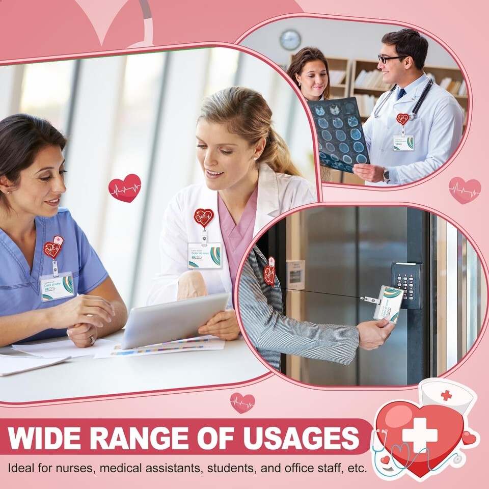 Packing List: a total of 12 heart-shaped nursing badge reels with clip, available in 2 styles for you to choose from, featuring cute and charming electrocardiograms and nurse cap designs to celebrate nursing professionalism, making them a delightful accessory that adds a touch of fashion to your clothes and stands out in the crowd