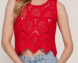 - Sleeveless Round Neck Cotton Crochet Crop Tank Top Red Small