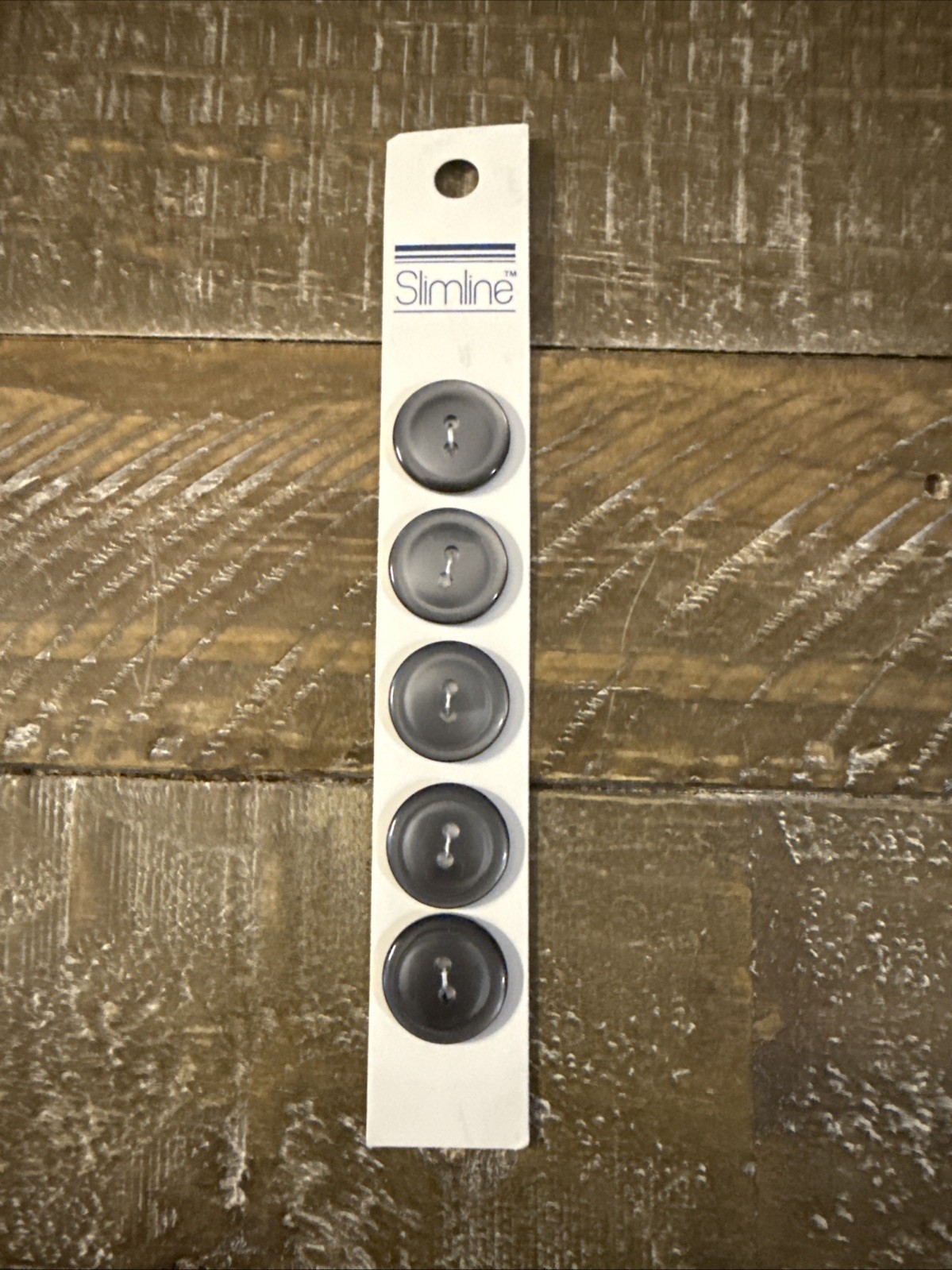 The SlimLine Buttons 5 Piece 3/4" in gray color are plastic buttons designed for crafting and sewing projects. These buttons are slim and have a sleek design, making them perfect for adding closures and connectors to various creations. With their gray color and durable plastic material, these buttons offer a versatile and stylish option for any crafting or sewing project.