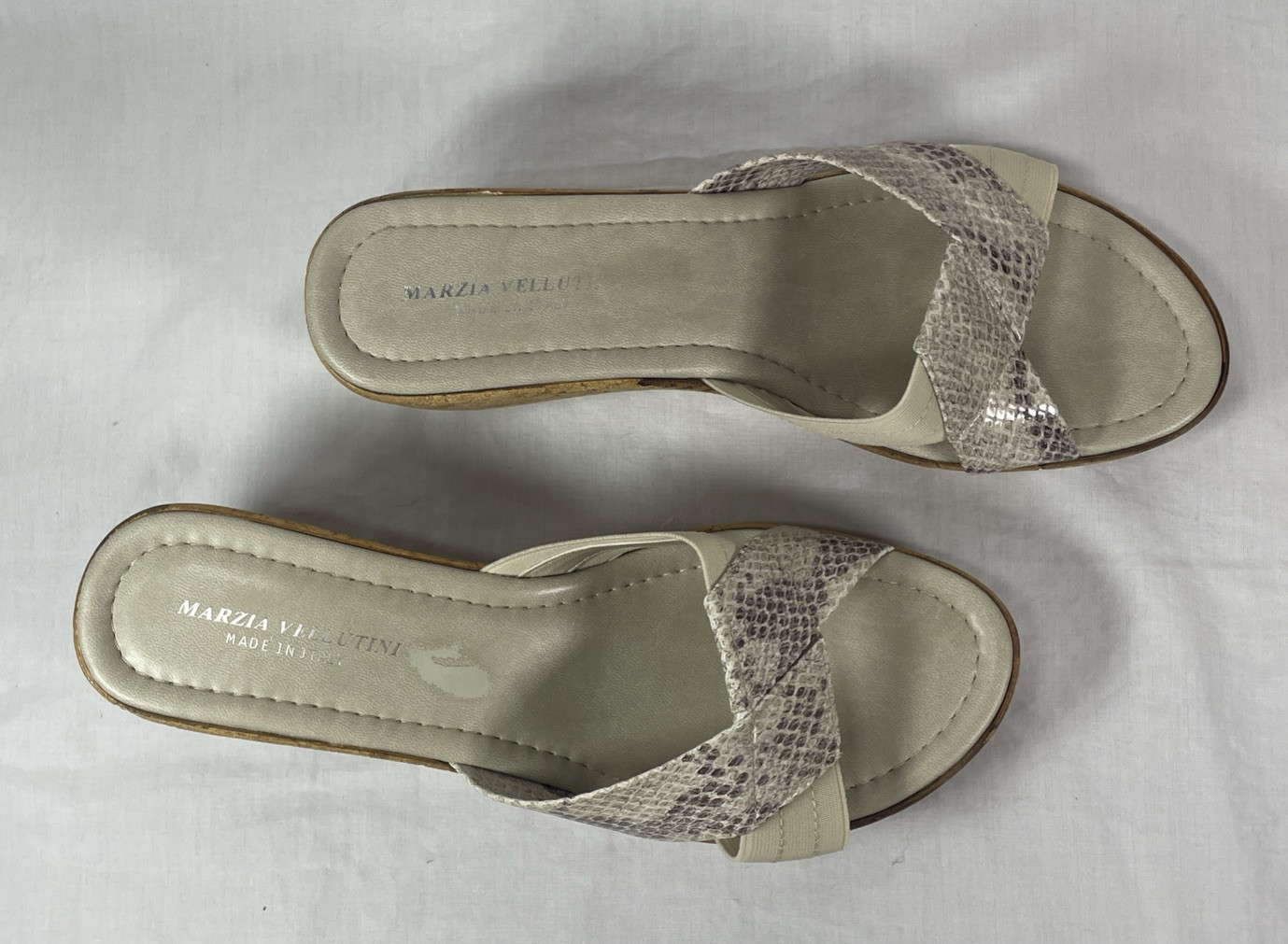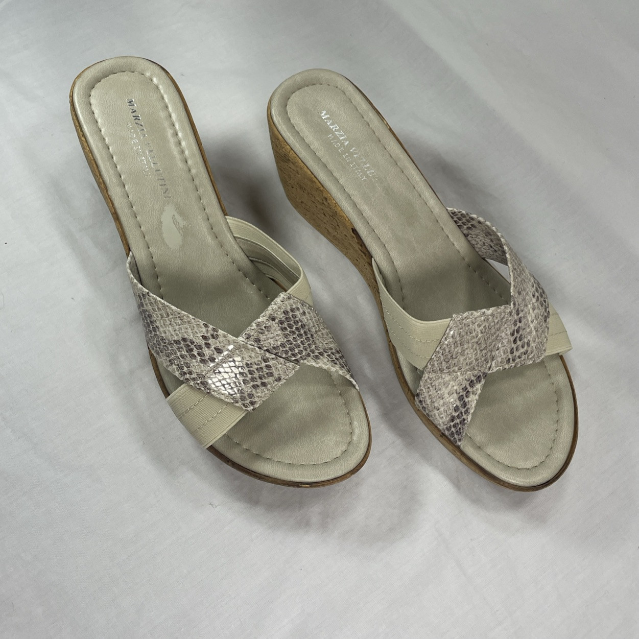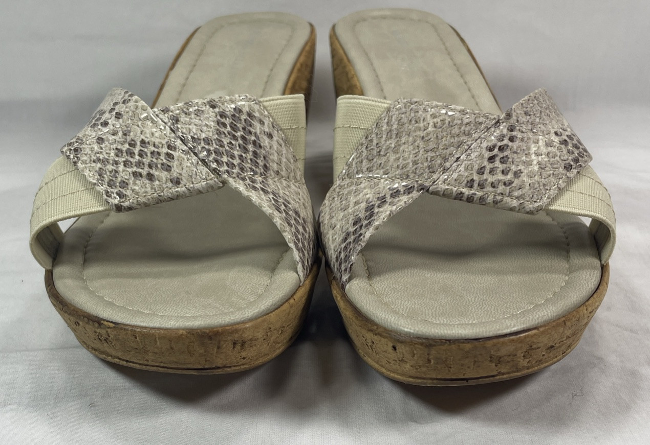 - Slip-On Snake-Print Cork Wedge Sandals Sz 7 Made In Italy - Marcia Vellutini