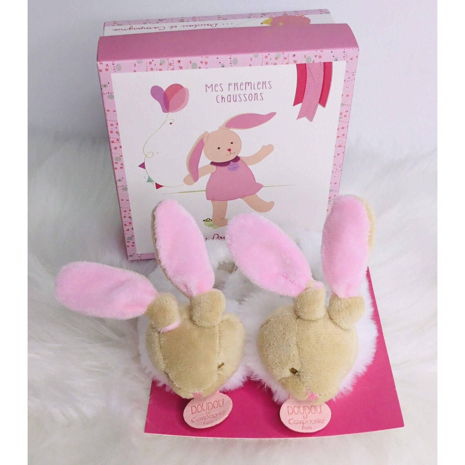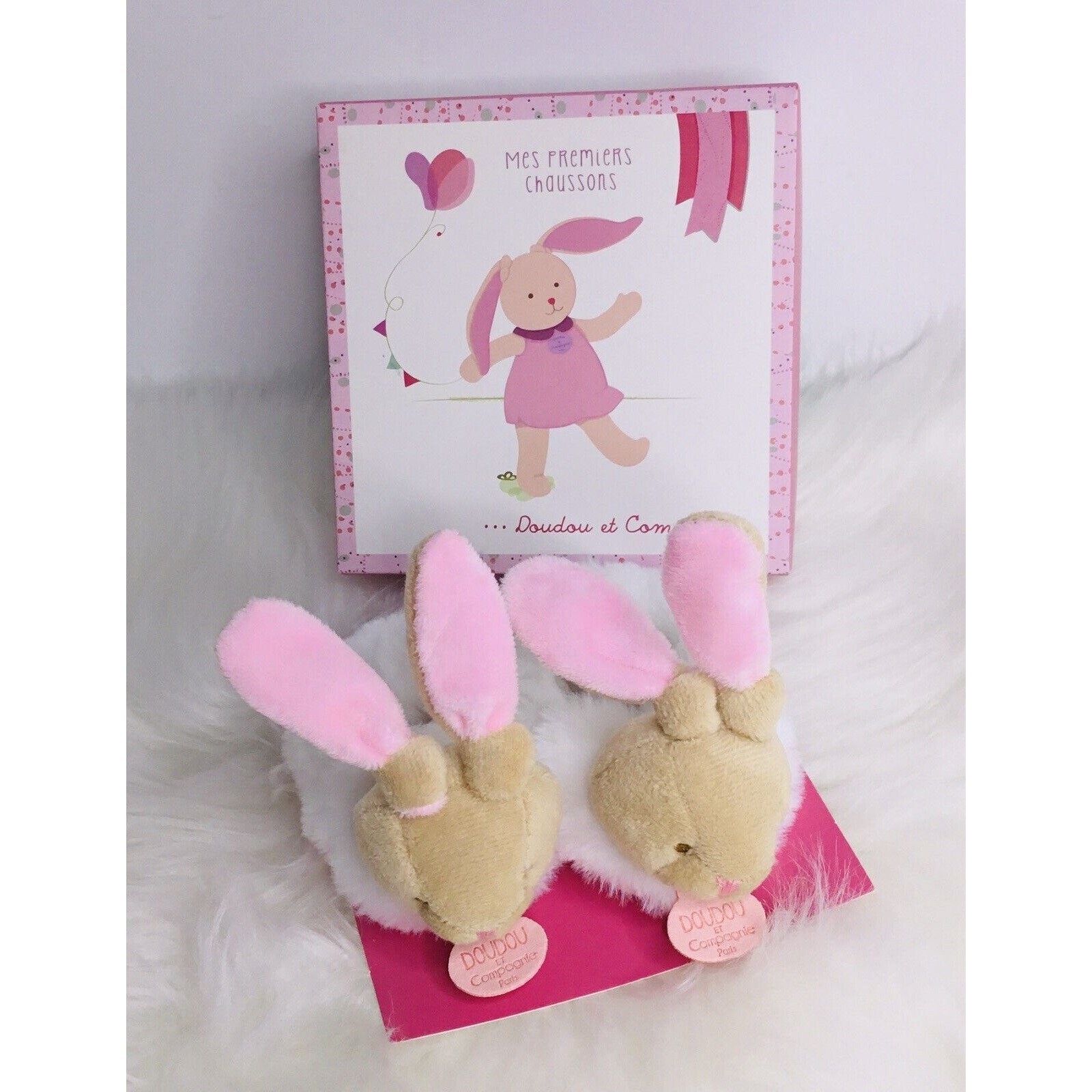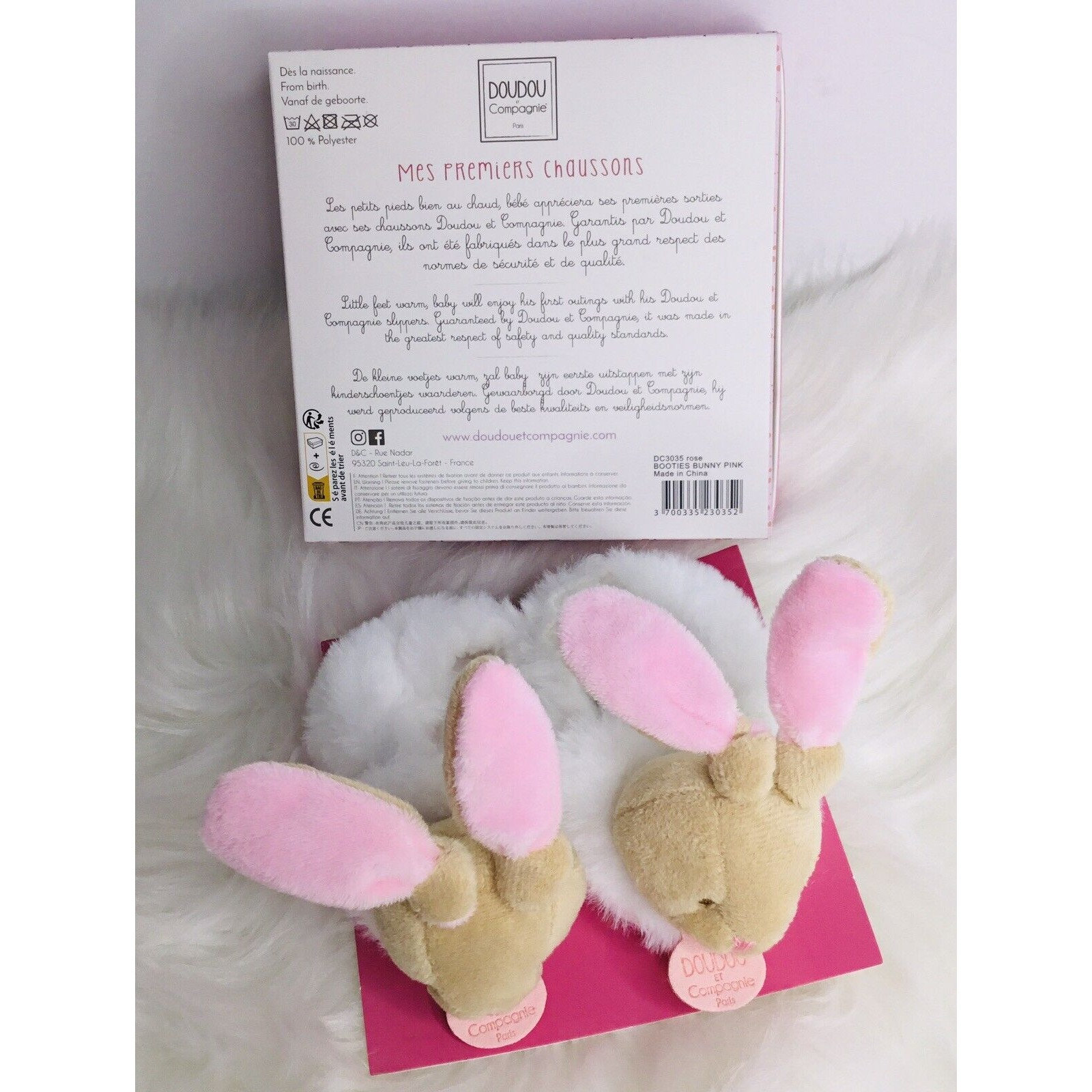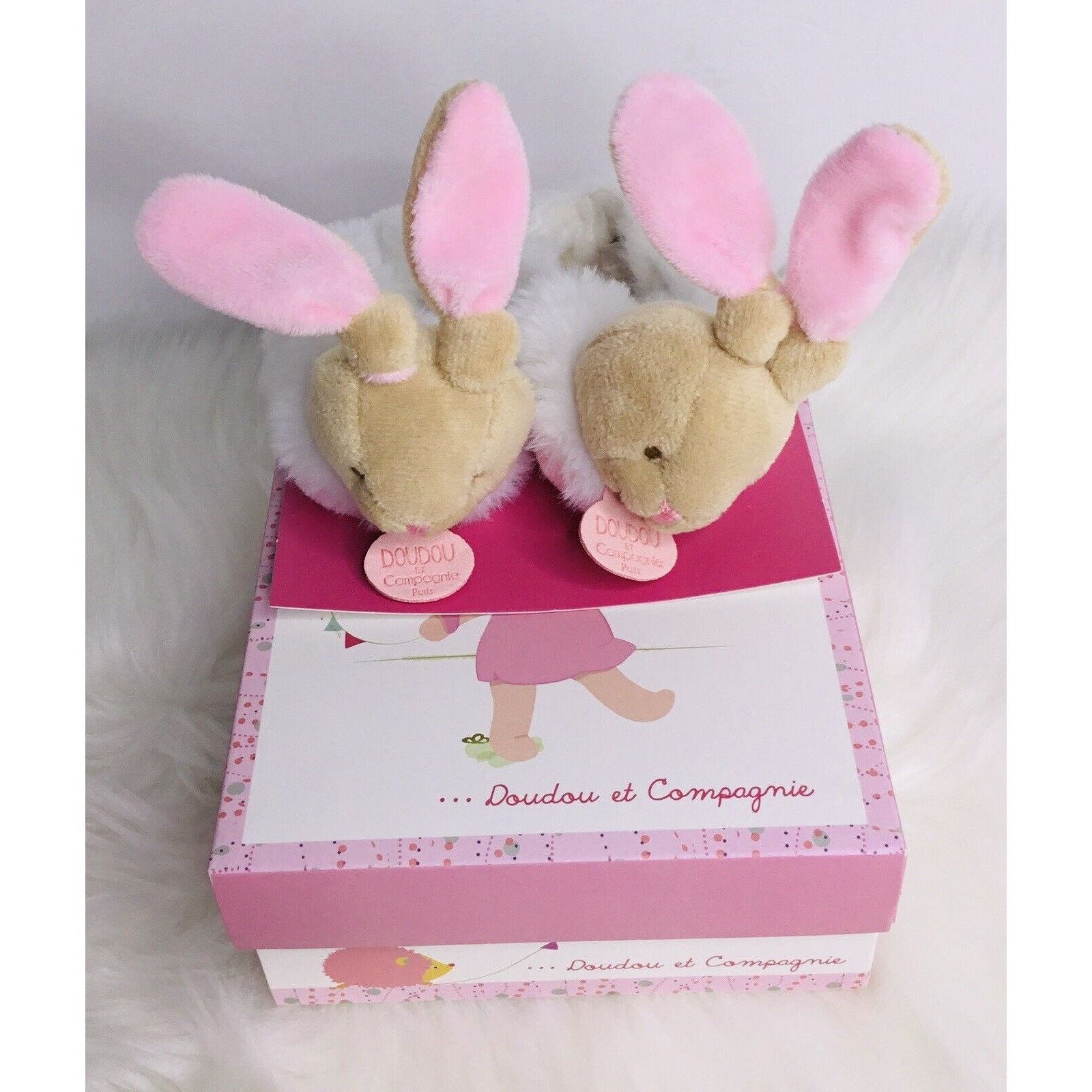 Slippers~Booties~ DOUDOU et COMPAGNIE PARIS~Rabbit~Chausson Avec Hocket Rose new