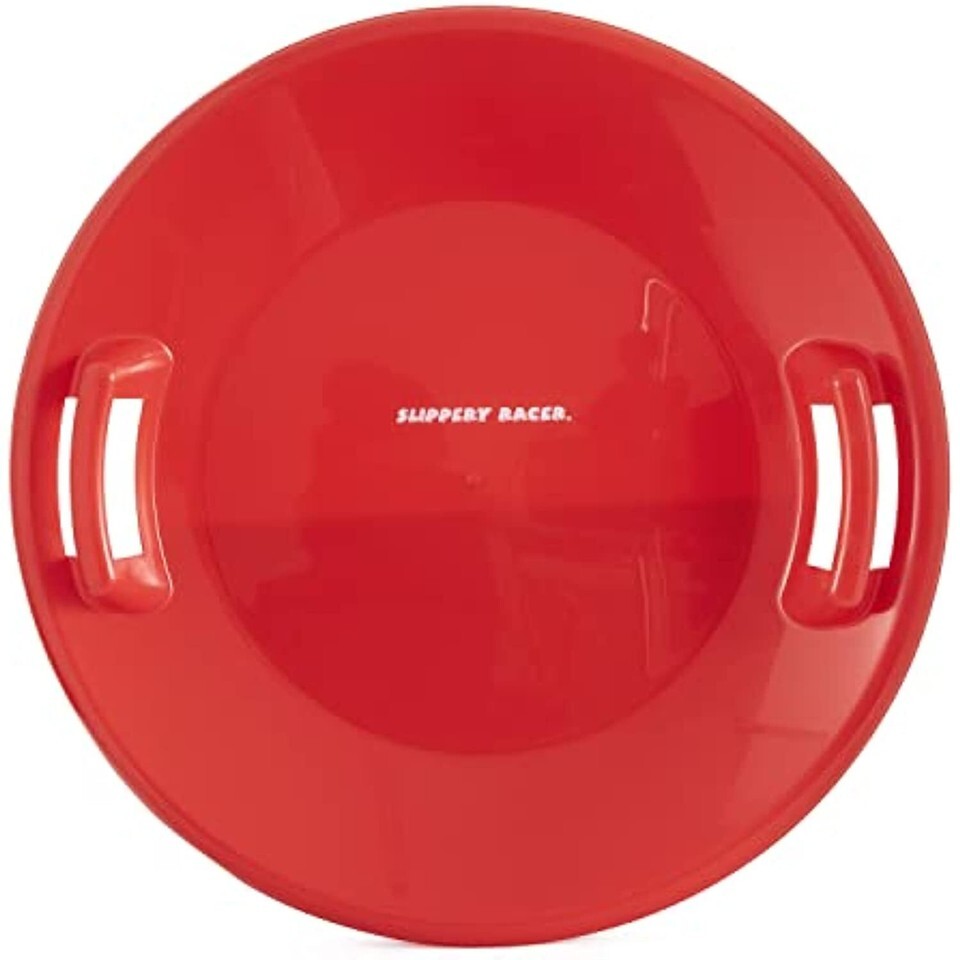 The downhill Pro saucer sled provides endless hours of fun in the snow for kids and adults Slippery Racer sleds, toboggans, and tubes are ahead of curve in design, quality, and performance. Made with premium grade plastic with the perfect Firm to flex ratio and coated with Slippery Racer exclusive ice vex cold-resistant treatment, Slippery Racer sleds are built to withstand no matter how rugged the conditions. That's why Slippery Racer is the brand of choice for sledding enthusiasts, hobbyists, and snow lovers everywhere.