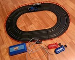 Get ready for an exciting race with this Mattel Hot Wheels Slot Car Race Set! The set includes a small oval track and battery-powered power pack, all perfect for racing enthusiasts. The cars are made of durable plastic and come in blue and black colors, with a scale of 1:43. This Hot Wheels Racing set is perfect for kids aged 4-16 years old who love cars and racing. REQUIRES D CELL BATTERIES NOT INCLUDED! This is a pre-owned item with normal wear. Tested and is in working condition. See Pictures
