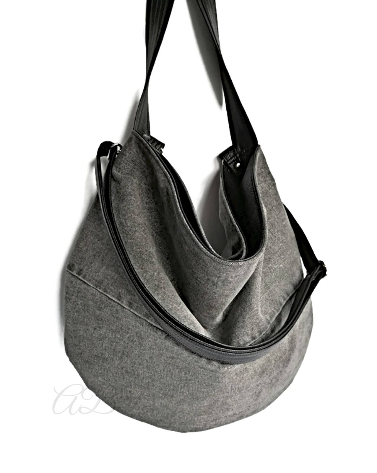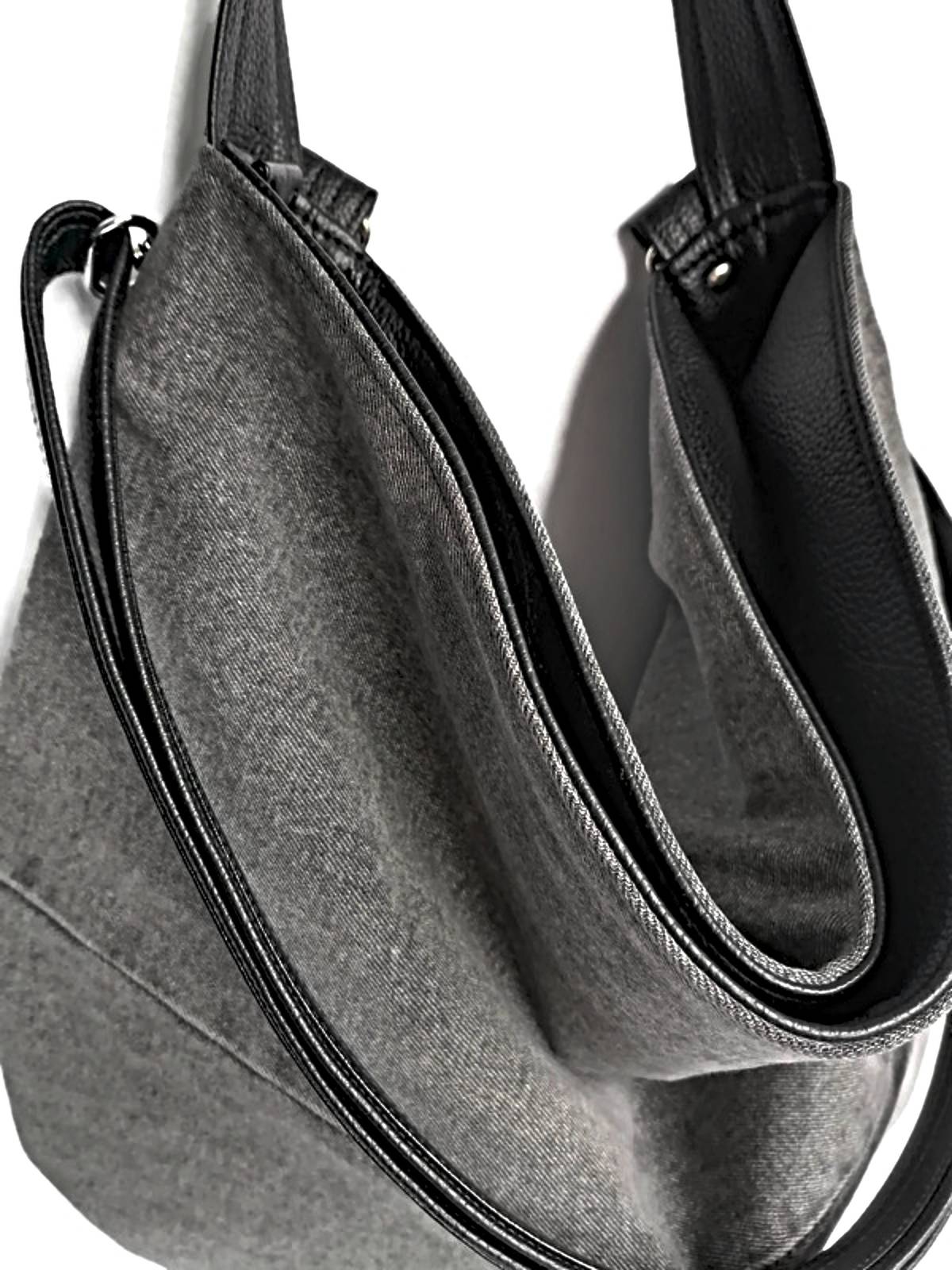 - Slouchy Recycled Denim Tote Bag: Gray Upcycled Jeans Purse