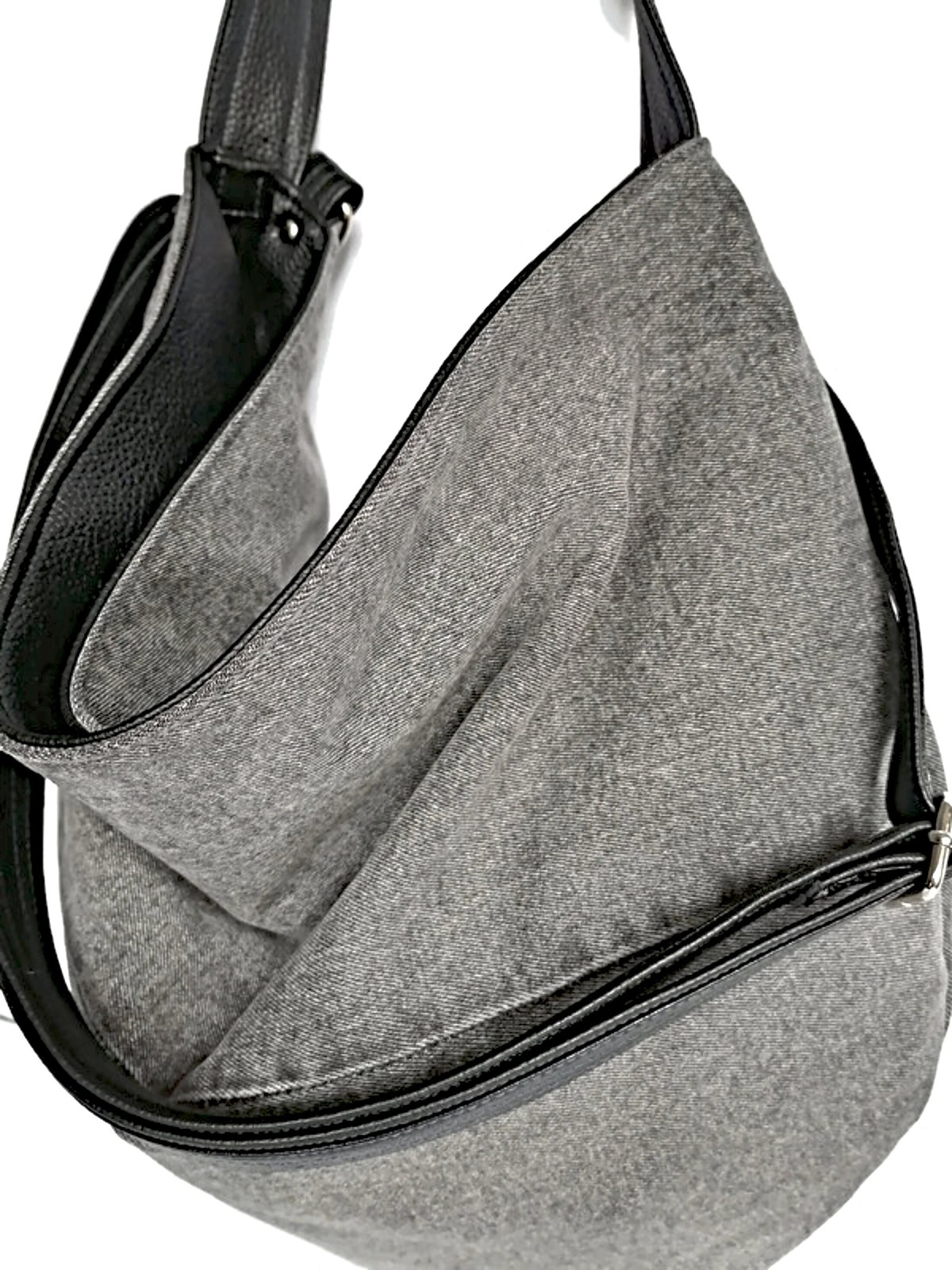 This Large Slouchy Denim Bag is a stylish and sustainable choice for everyday wear. Made from recycled grey jeans and denim fabric, it offers a modern and relaxed look with a soft structure that naturally slouches when carried.