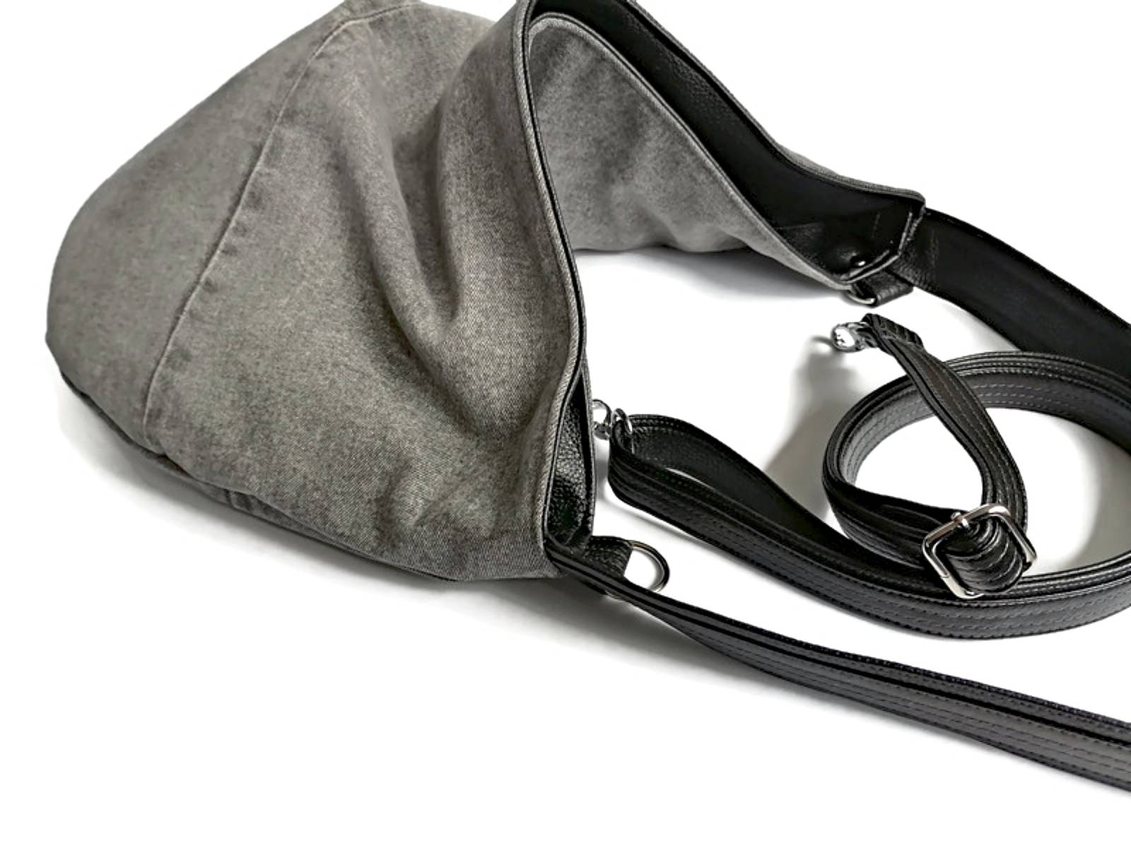 Slouchy Recycled Denim Tote Bag: Gray Upcycled Jeans Purse