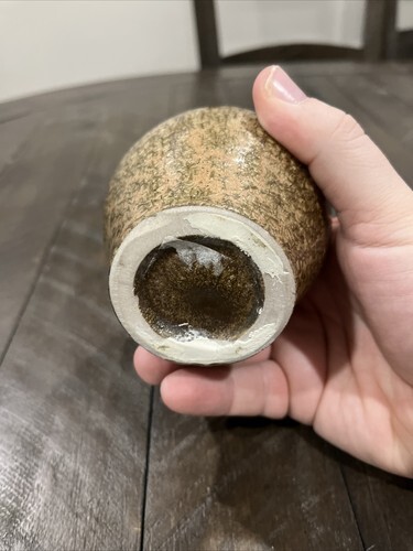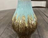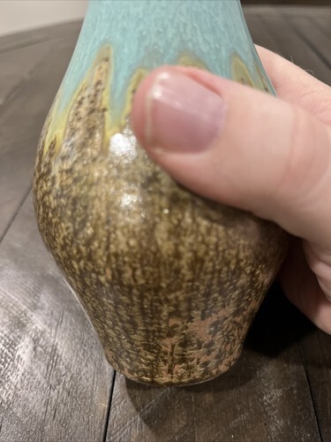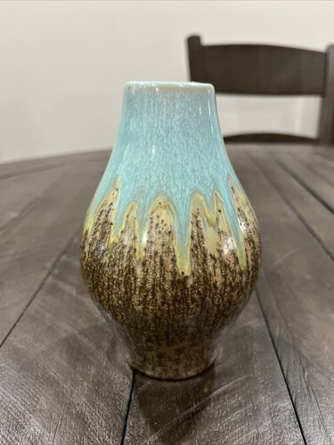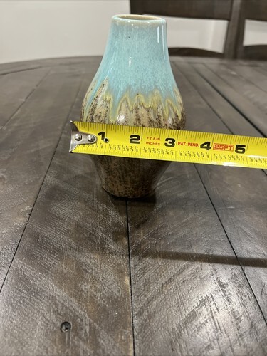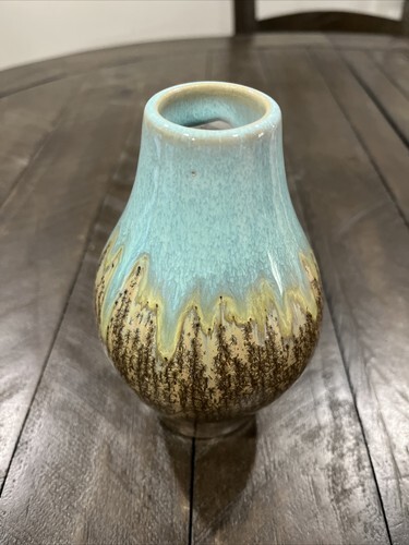 - Small Artisan Studio Pottery Vase, Drip Glaze Aqua Blue Over Brown Crystalin