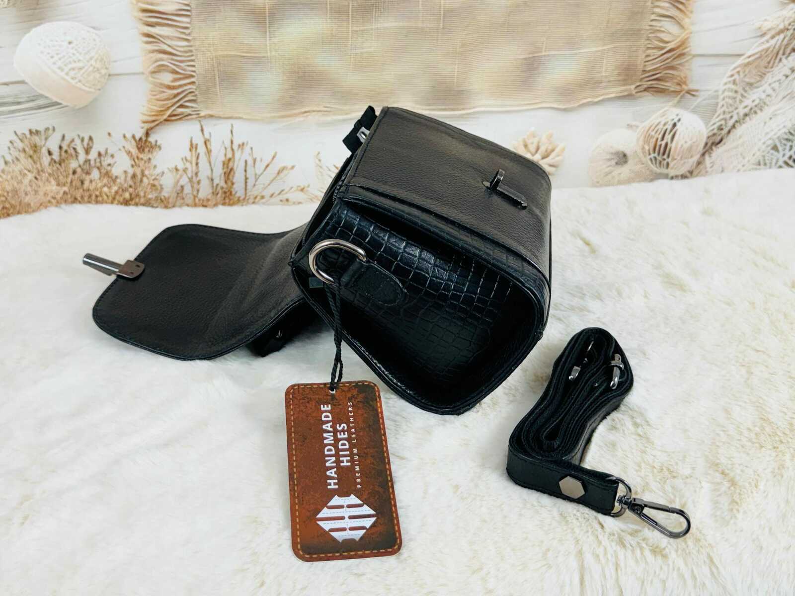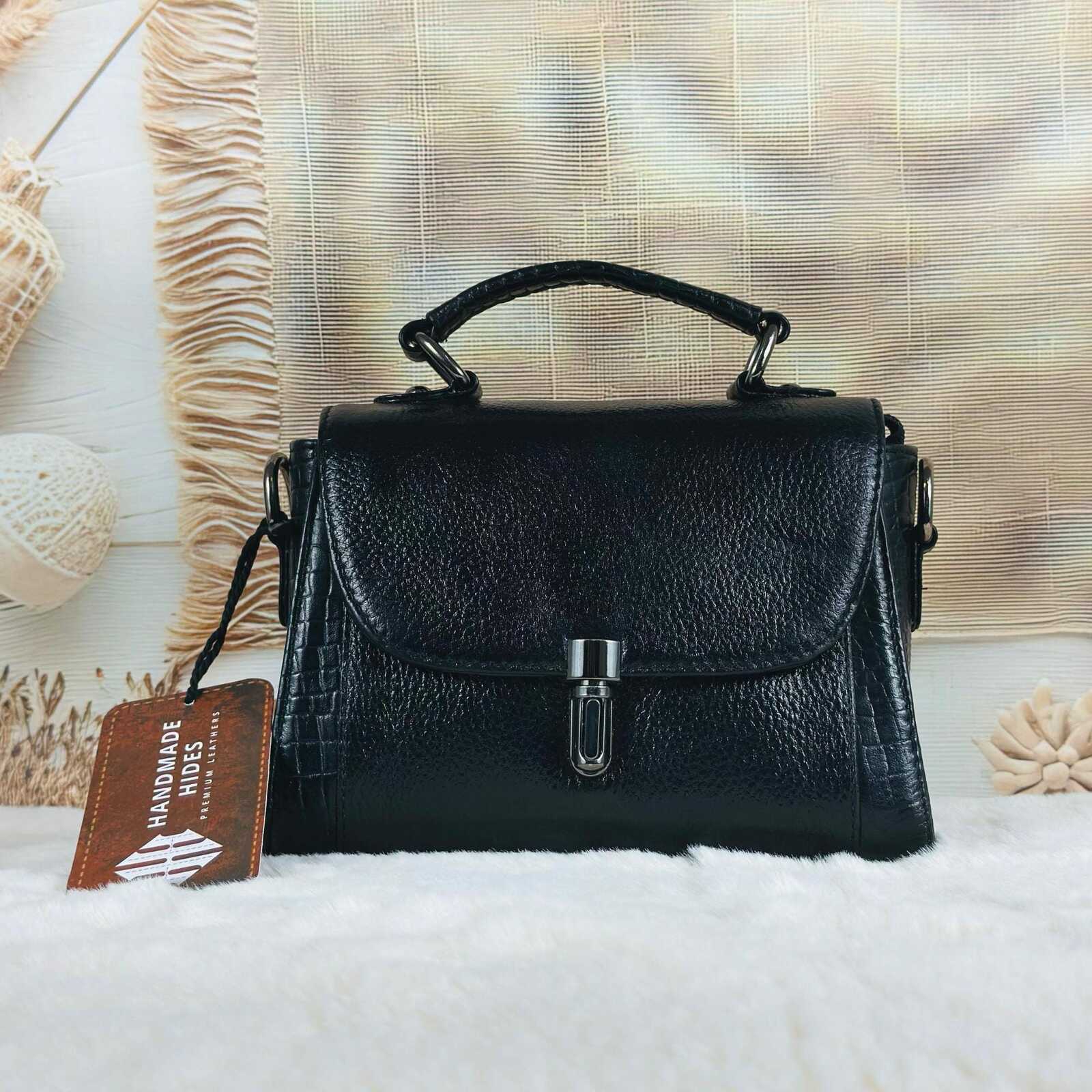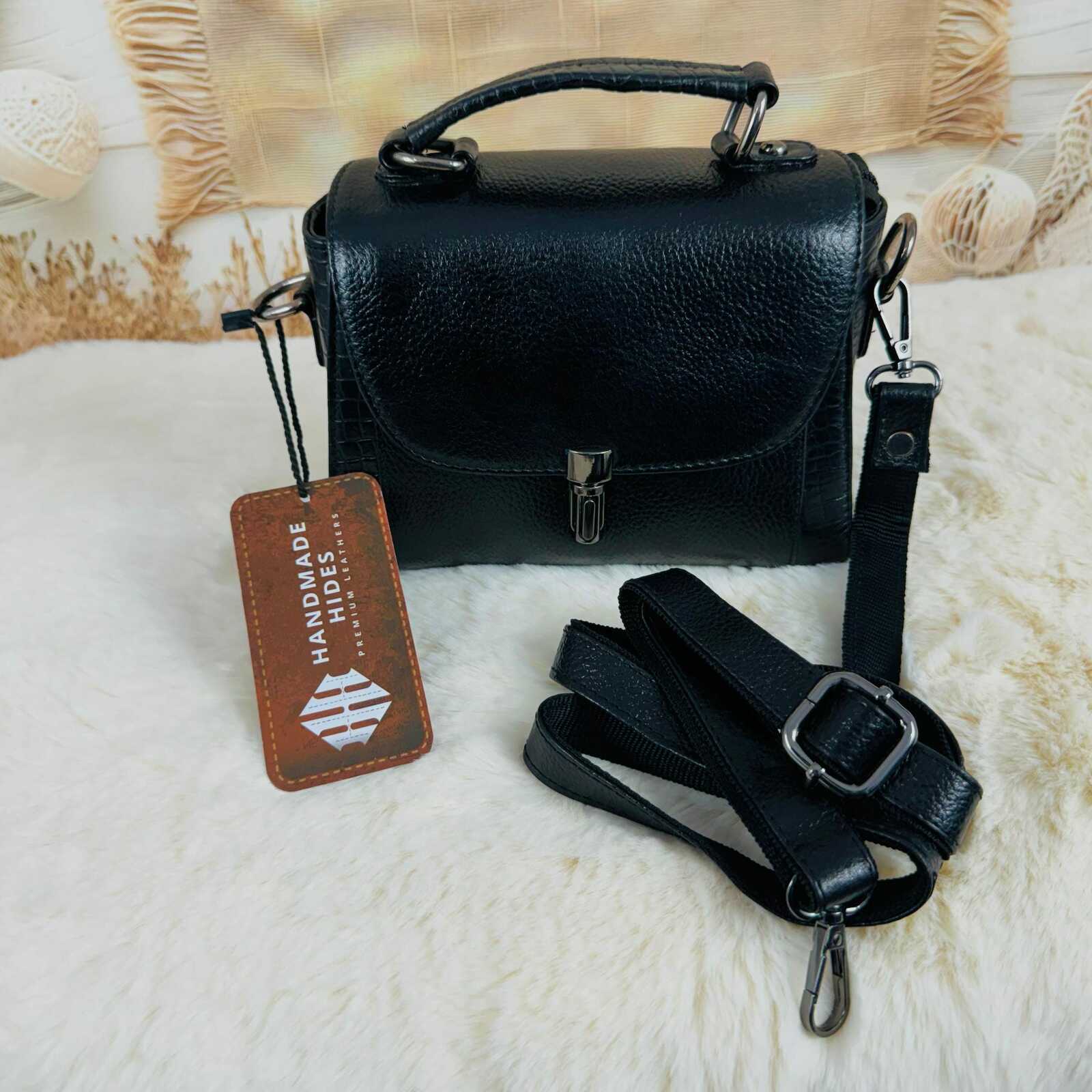 Upgrade your accessory collection with this handmade black leather handbag — a compact, elegant, and practical piece that makes a perfect holiday gift for women.