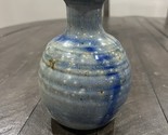 Small Blue Bud Vase Art Pottery Signed Stoneware Signed Doudiet? Glazed 5”