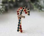 - Small Candy Cane Brooch, Rhinestone Crystal Vintage Holiday Pin