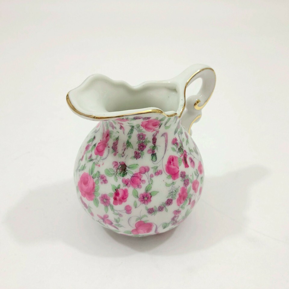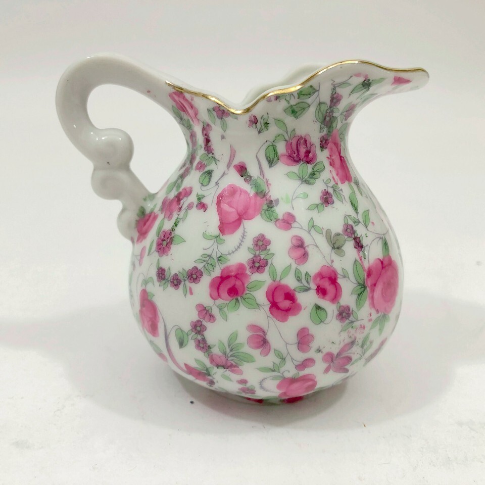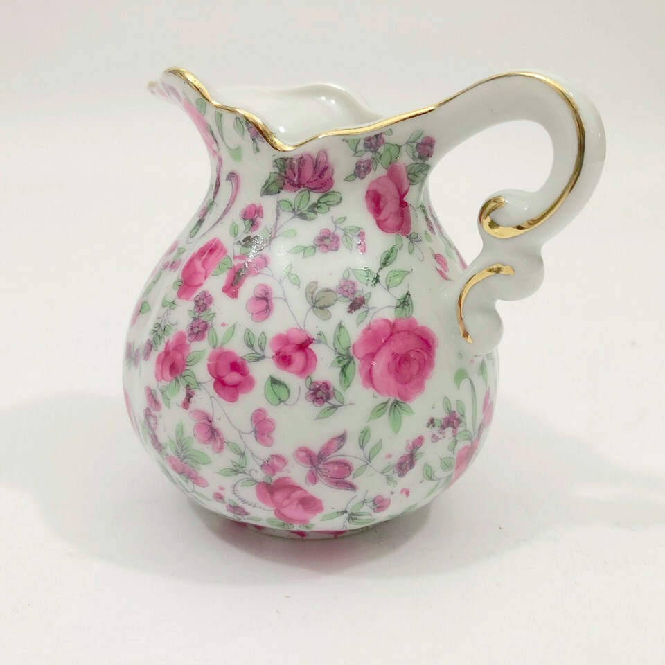 - Small Ceramic Porcelain Creamer 3.5x3.75 inches Pink Floral