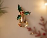 Small Christmas Bell & Holly Brooch | Low Profile Holiday Pin Work Jewelry