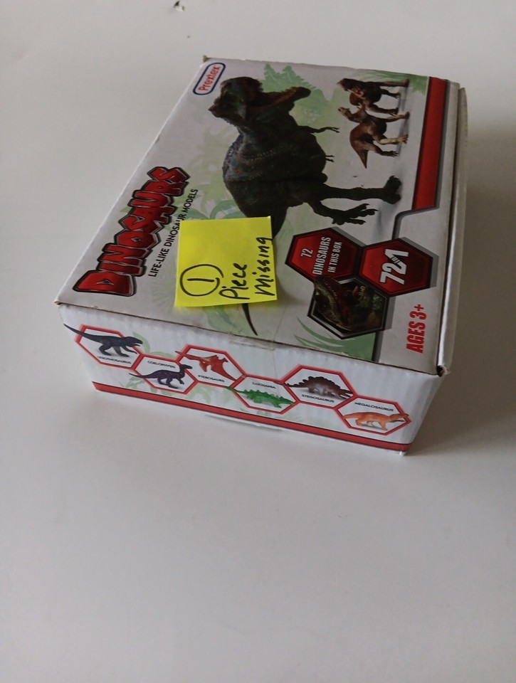 This small lot of 71 plastic dinosaur figures is a great addition to any collection. The set includes various models of popular dinosaurs like Tyrannosaurus Rex, Triceratops, Brachiosaurus, and Pterodactyl. The figures are suitable for all occasions and are perfect for children aged 3-4 years. The set comes in its original box and is box. The plastic material ensures that the figures are durable and long-lasting. The colorful multicolor figures represent different animal species and are a great way to add some prehistoric fun to your collection. This is a pre-owned item with normal wear. BOX SAYS 72 PIECES BUT 1 PIECE IS MISSING MAKING 71 PIECES. SEE PICTURES