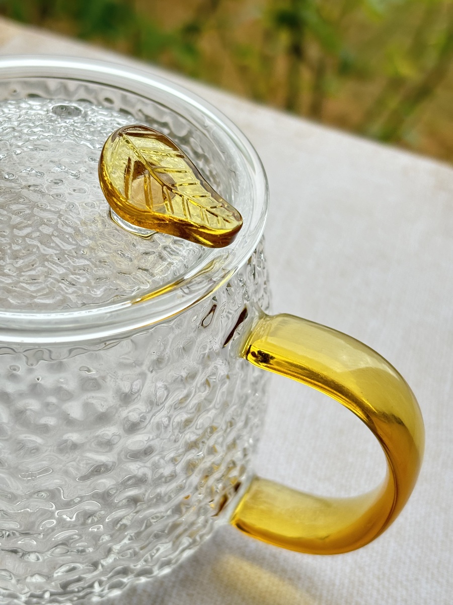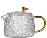 This hammered glass teapot comes with a glass filter to retain the tea leaves.