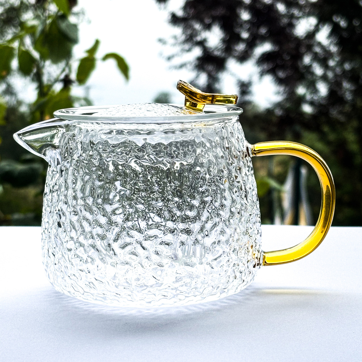 Hammered glass teapot made of borosilicate glass, heat resistant, very durable, anti-corrosion and eco-friendly.