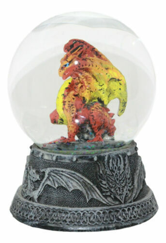 Ebros Small Mythical Fire Lava Volcanic Hyperion Dragon Glitter Water Globe Figurine