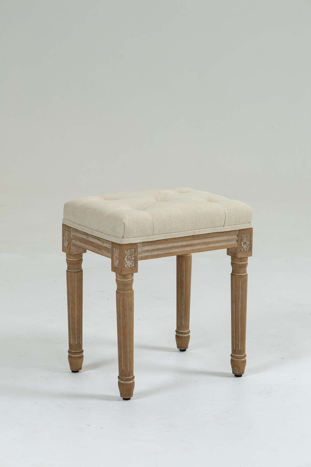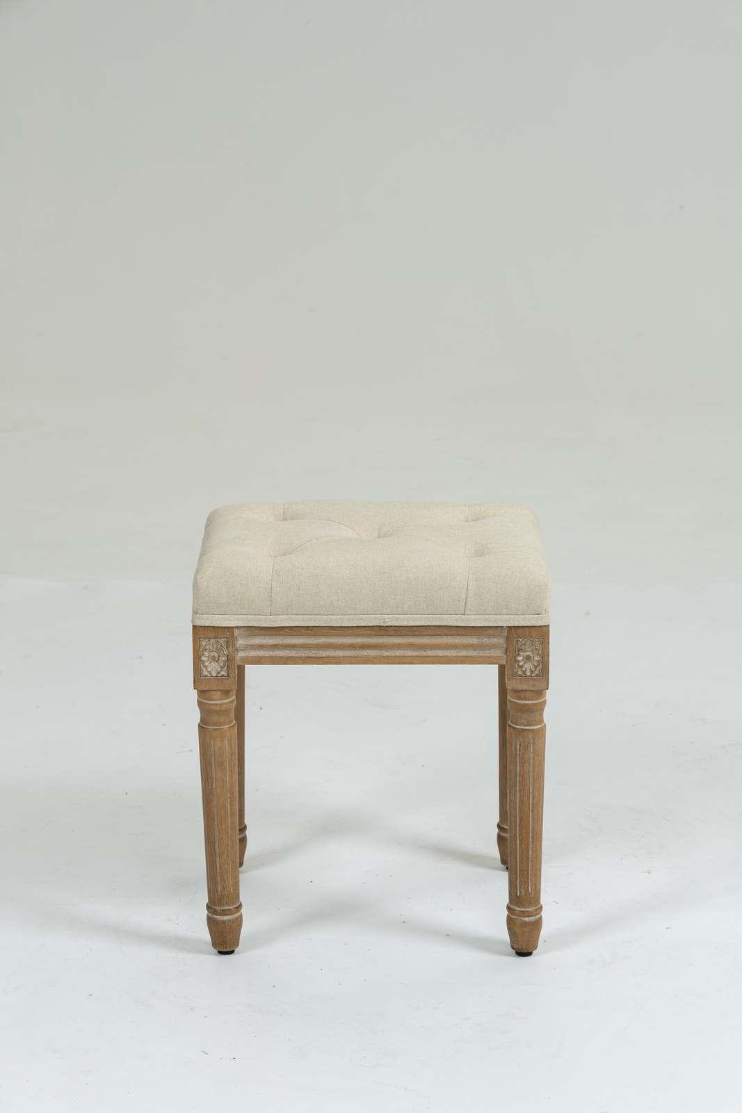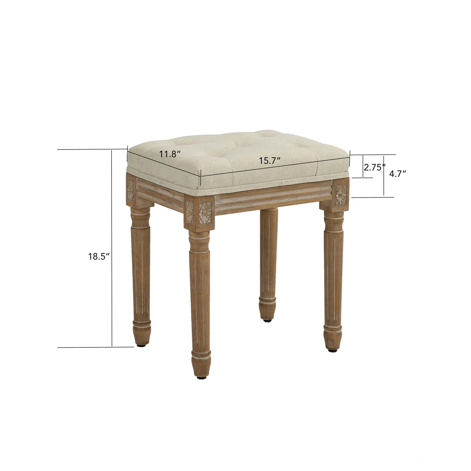 - Small Padded Square Ottoman Bench - Rustic Upholstered Vanity Stool