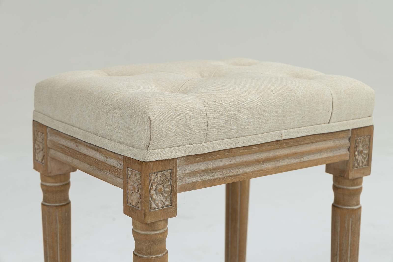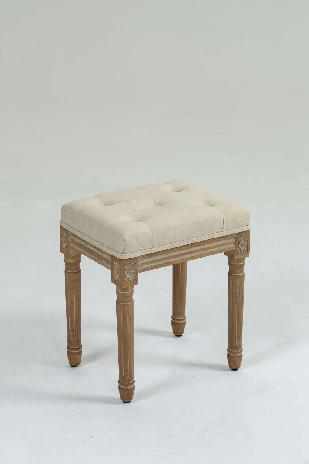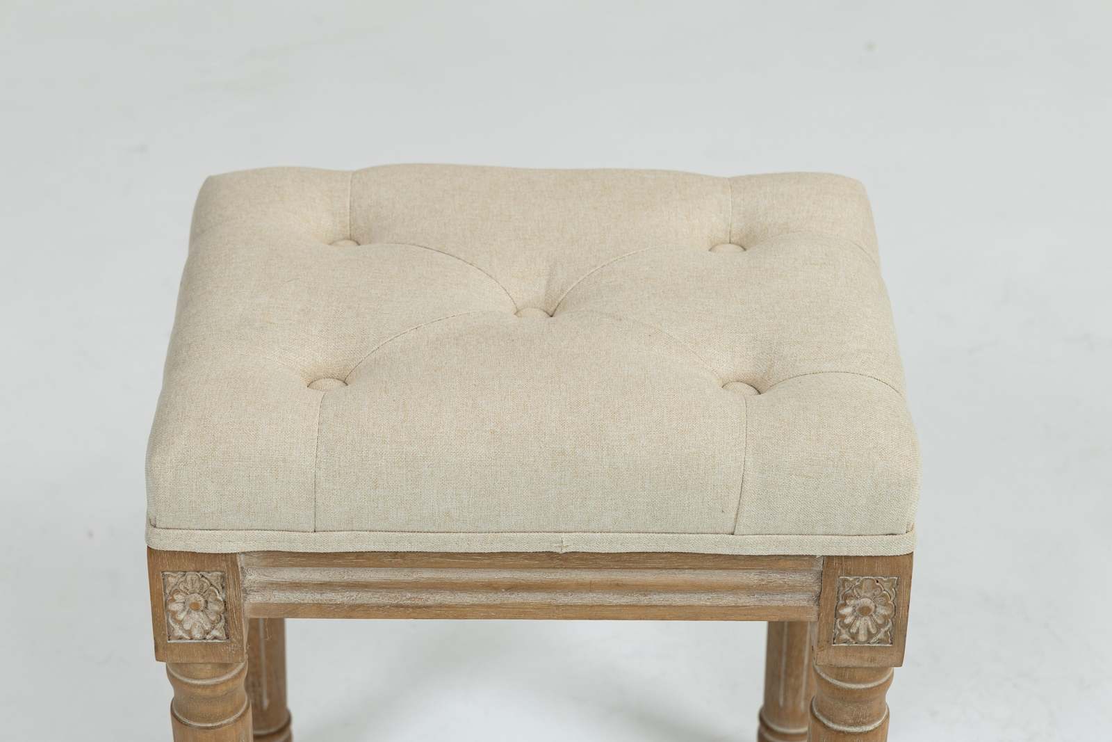 - Small Padded Square Ottoman Bench - Rustic Upholstered Vanity Stool