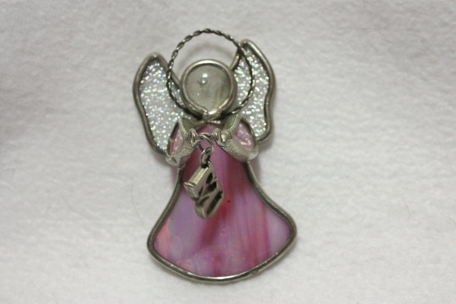 - Small Pink Stain Glass Angel with "I <3 U" Charm