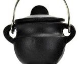Crafted of cast iron and standing a discreet 2.75 x 3 inches, this squat cauldron rests on three legs and has small handles set on either side of its rim, through which is looped the metal carrying handle. Coming complete with a cast iron lid, it makes a wonderful addition to those who do not have the space on their altar for larger cauldrons or for those who simply wish to decorate their home or desk with this cauldrons small but powerful presence.