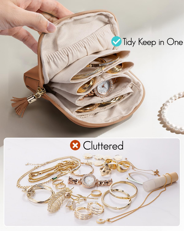 Compact yet large roomy, this jewelry organizer easily fits into tote,purses, backpacks, or luggage?ideal for daily use, travel, or quick getaways. Its expandable structure maximizes storage without bulk