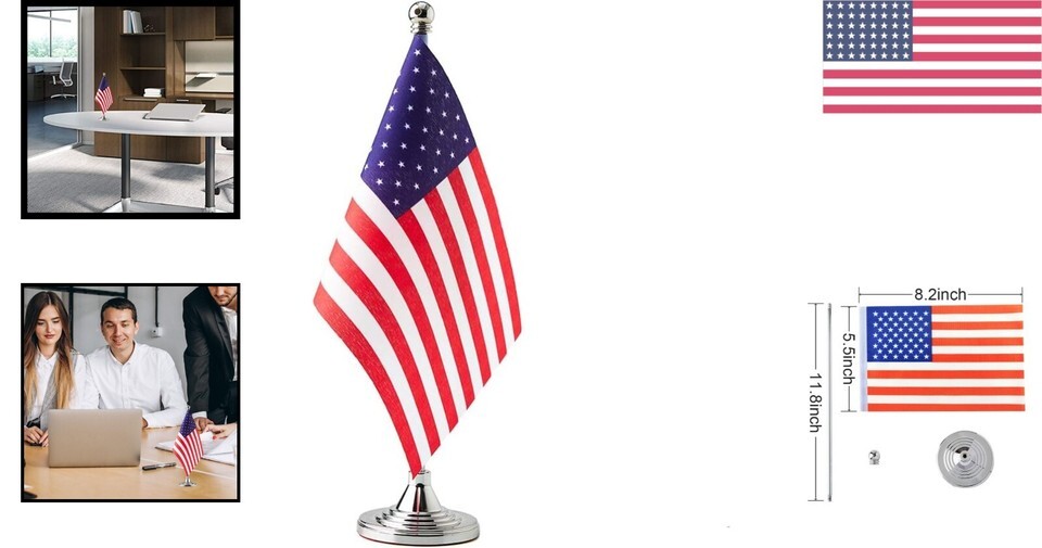Size: Flag dimensions: 8.2in x 5.5in; Flagpole height: 12in.