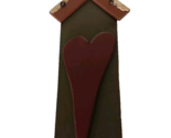 Add a touch of charm to any room with this cute wall hanging decor. The small wooden house, featuring a green and brown color scheme, is perfect for a farmhouse style. The house is designed with a brown heart, making it a unique addition to your home decor. The item measures approximately 11 inches in height and does not require any additional parts for display. It is a great choice for any room in your home and is sure to catch the eye of anyone who enters. The origin of this item is unknown, but it is clear that it was crafted with care and attention to detail. This is a pre-owned item with normal wear. See Pictures