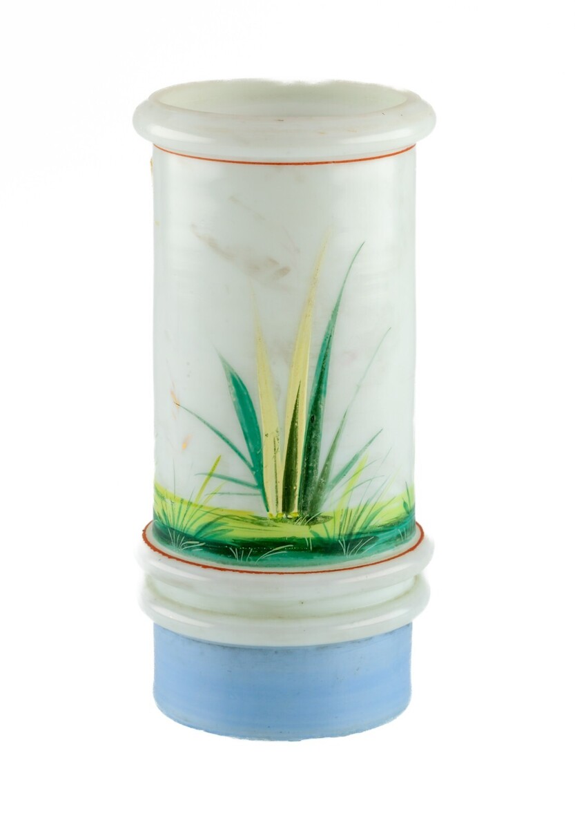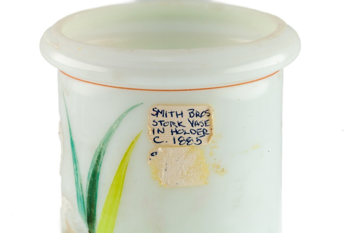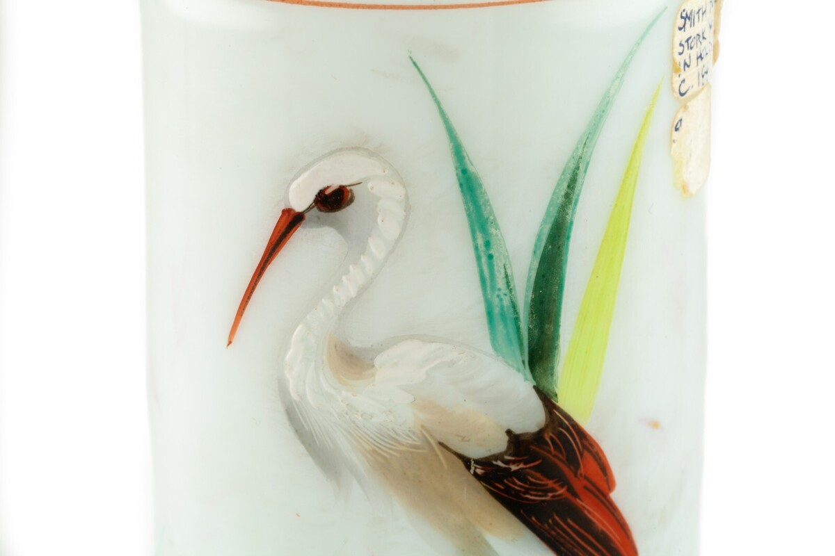 Smith Bros. Vaso di cicogna di vetro dipinto a mano 1885