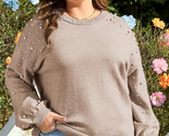 - Smoke Gray Pearled Drop Shoulder Plus Size Sweater