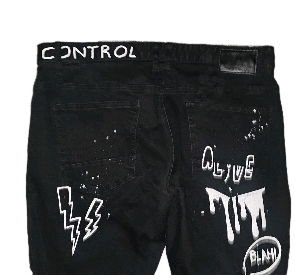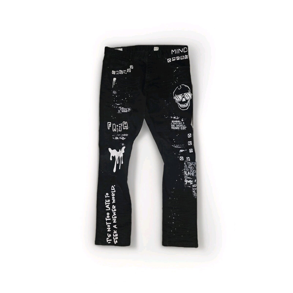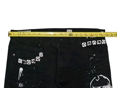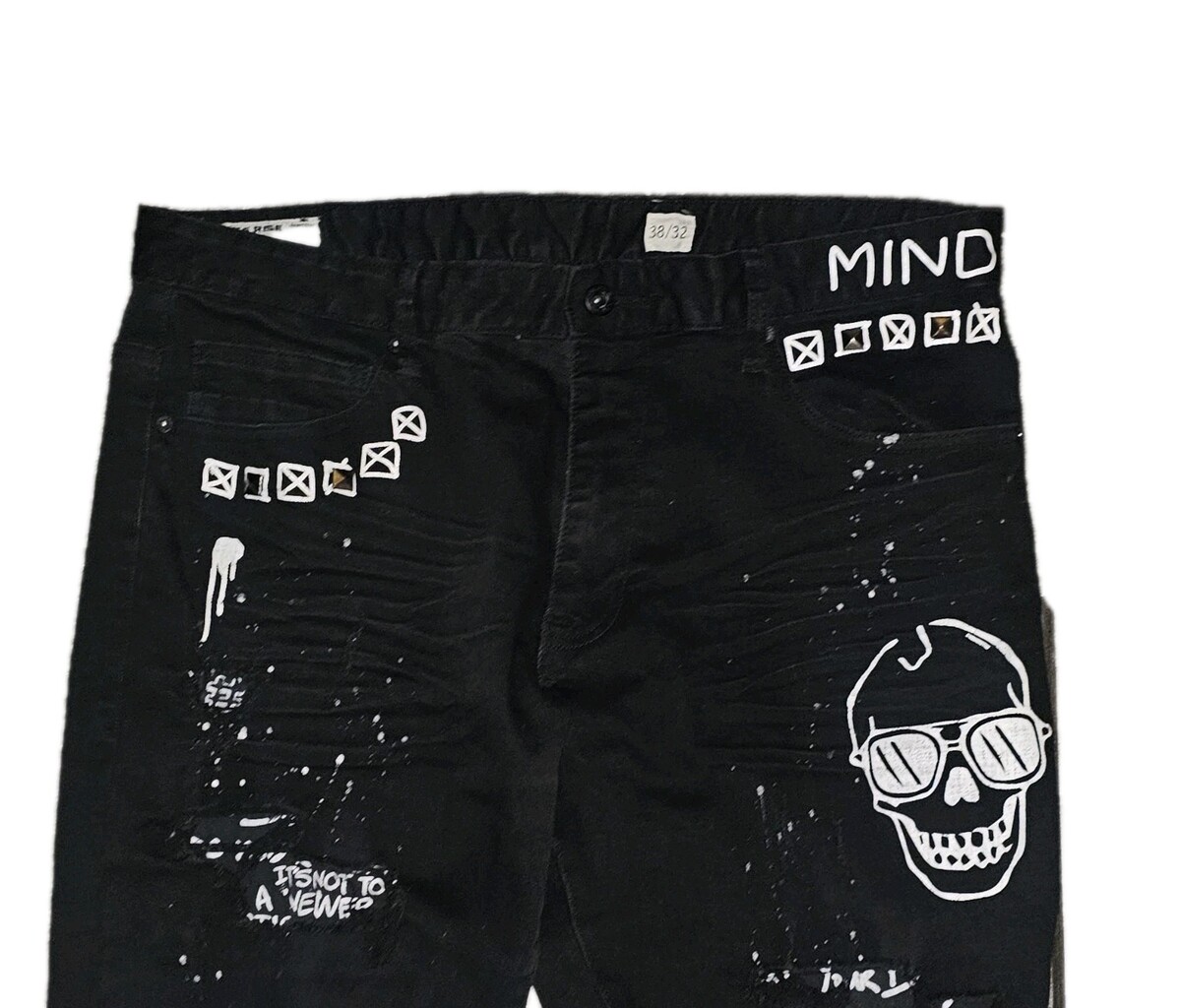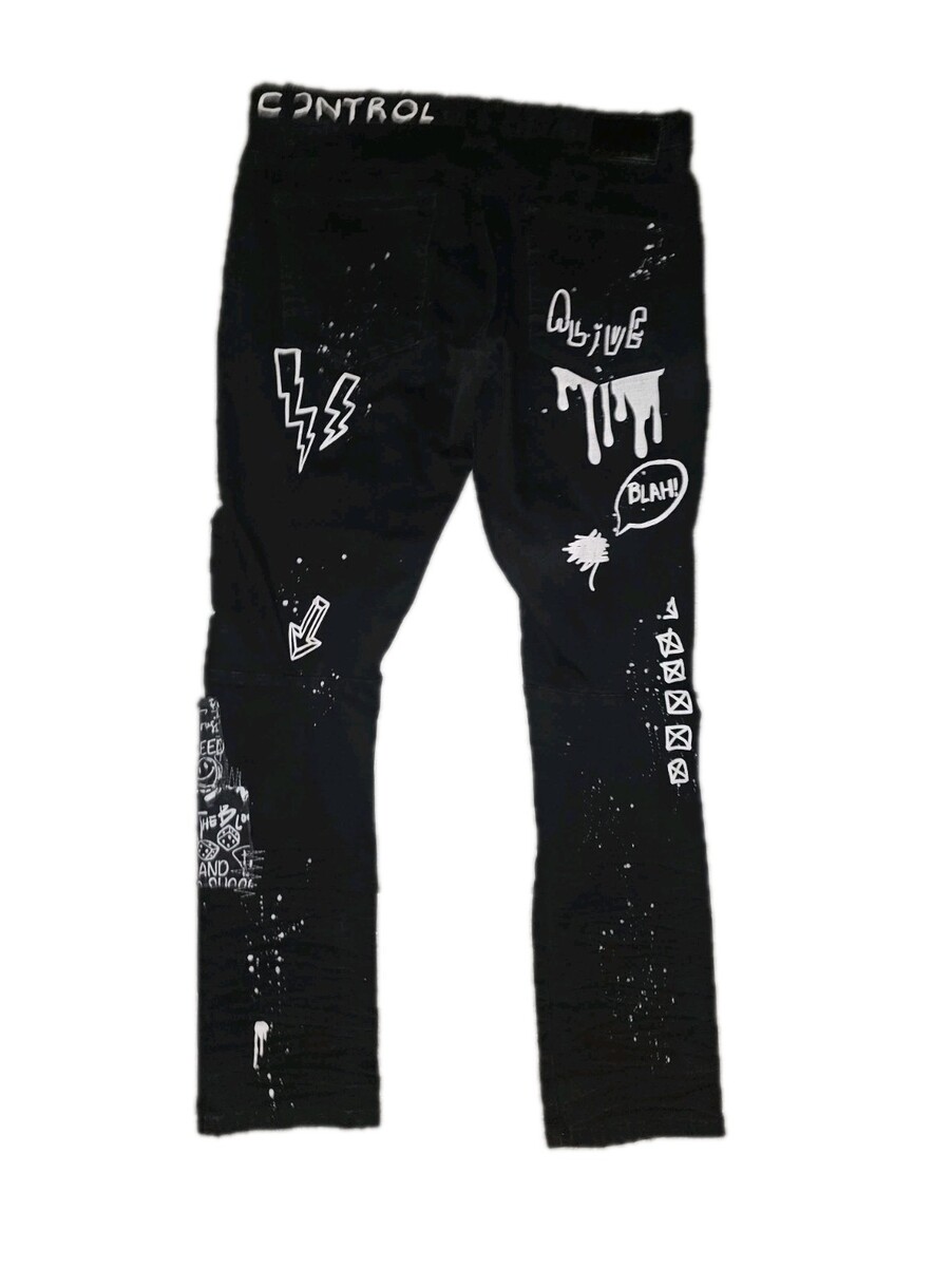 - Smoke Rise Thrashed Black Distressed Graffiti Grunge Skinny Jeans Men's Sz 38x32