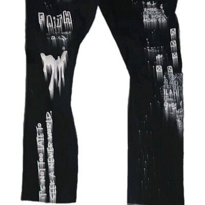 The Smoke Rise Thrashed Black Distressed Graffiti Grunge Skinny Jeans in Men's size 38x32 are a stylish and edgy choice for those looking to make a statement with their clothing. The geometric graffiti pattern, dark fabric wash, and slim fit give these jeans a unique and distressed look. Made from a comfortable cotton blend denim, they feature a zip closure, 5-pocket design, and a mid-rise waist. With a focus on style and attitude, these jeans are perfect for those who embrace the grunge and hip-hop aesthetic.