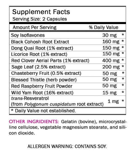 MENOPAUSE SUPPORT COMPLEX: Our powerful dietary supplement designed to support a balanced internal environment and promote optimal well-being. This advanced formula combines the natural benefits of Soy Isoflavones, Black Cohosh Root Extract, Dong Quai Root, Licorice Root, Red Clover Aerial Parts, Sage Leaf, Chasteberry Fruit, Blessed Thistle, Red Raspberry Fruit Powder, Wild Yam Root, Trans-Resveratrol with a blend of potent ingredients known for their properties.