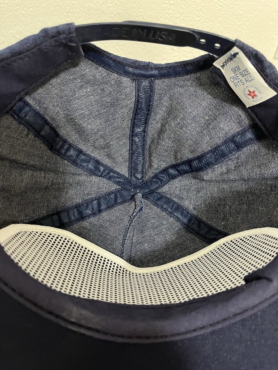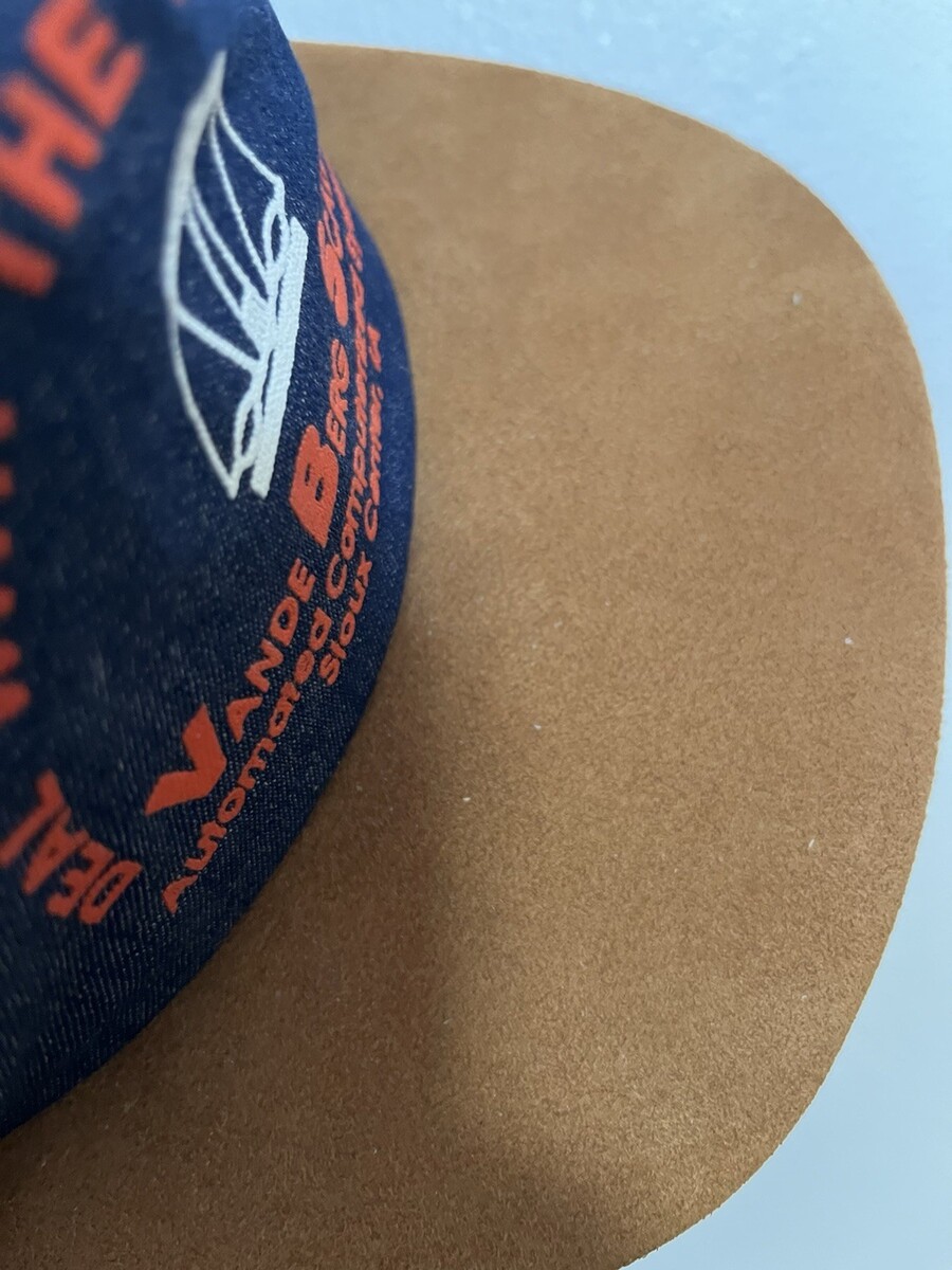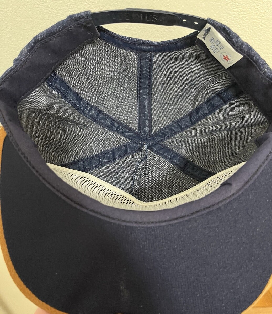 - Snapback Denim Style Trucker Hat Suede Bill Made In USA Excellent Shape One Size