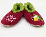 NWT, New With Tags Sales Samples. Men's Snoozies burgundy "Dad Needs A Beer" slippers One slipper has embroidered on it "dad NEEDS a beer" and the other slipper has and applique of a foaming mug of beer and a beer bottle. Perfect for the ,DAD, beer lover in your life. Soft and comfortable.