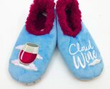 Snoozies Wine Cloud embroidered on one slipper over a small white cloud and on the other slipper is an appliqued half full wine glass sitting on a cloud. Light blue with burgundy faux fur lining. The perfect gift for your wine loving friends. Or splurge and just get them for yourself. Indulge!