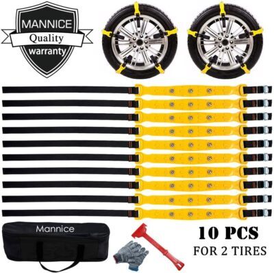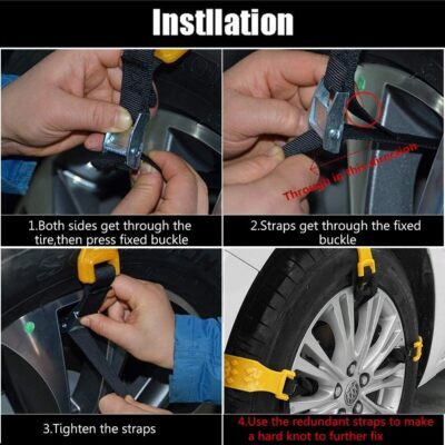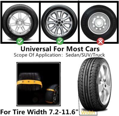 ?UNIVERSAL MODELS:Universal, this upgraded version anti-snow chain can be applied to all seasons, all the models of the tire width 7.2-11.6 inches(185mm-295mm).It fit for most Cars, SUV and Trucks ?EASY INSTALLATION: with no need to move the vehicle, fast installation and removal in minutes. Simple and effective solution to being stranded and disabled in all types of terrain and adverse conditions. Create a great convenience for you. ?GREAT DESIGN: Humanized design of alloy steel, good performance of antiskid,breaking the ice and griping road; Contact with the ground is covered with high hardness alloy nail slip. ?PREMIUM MATERIAL:This upgraded snow tire chains made of 100% gum-rubber material, resistant to low temperature of minus 50 degrees Celsius. Works equally well whether you are stuck in sand, mud or snow ?HIGH QUALITY: Speed limit of 40 km / h. This car suv universal mud security tire chains is 100% imported tendon gum-rubber material, low temperature resistance -resistant to low temperature of minus 50 degrees Celsius. Contact with the ground is covered with high hardness alloy nail, prevent slippery, 360 all-round.